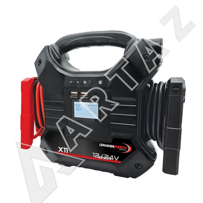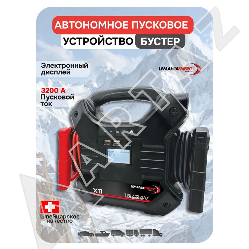 Пусковое устройство бустер пусковой ток до 3200А 12/24В с LiFePO4 аккумулятором 24000мАч и цифровым дисплеем LEMANIA ENERGY X11
