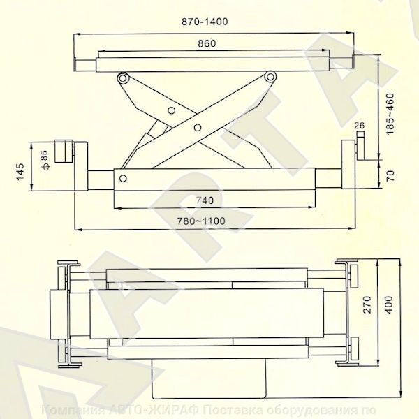 - Применимость: для смотровой ямы и для четырёхстоечных подъемников