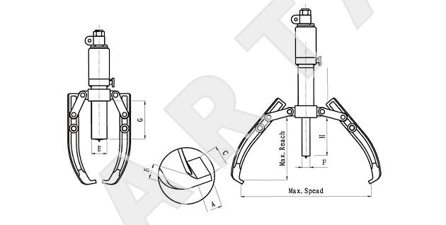 - Глубина захвата 220 мм — позволяет выпрессовывать элементы, расположенные глубоко в узле, без разборки смежных конструкций.