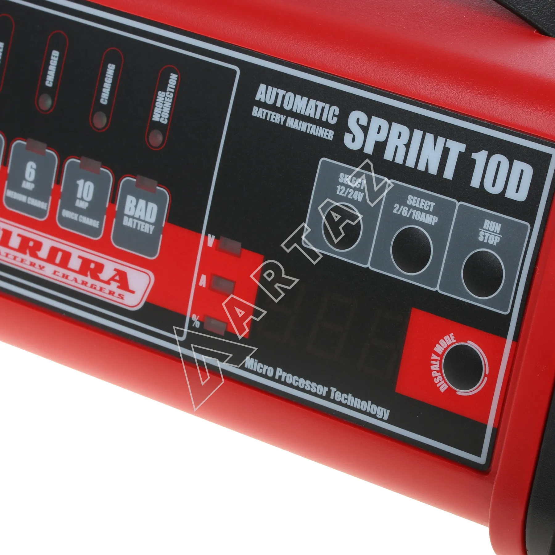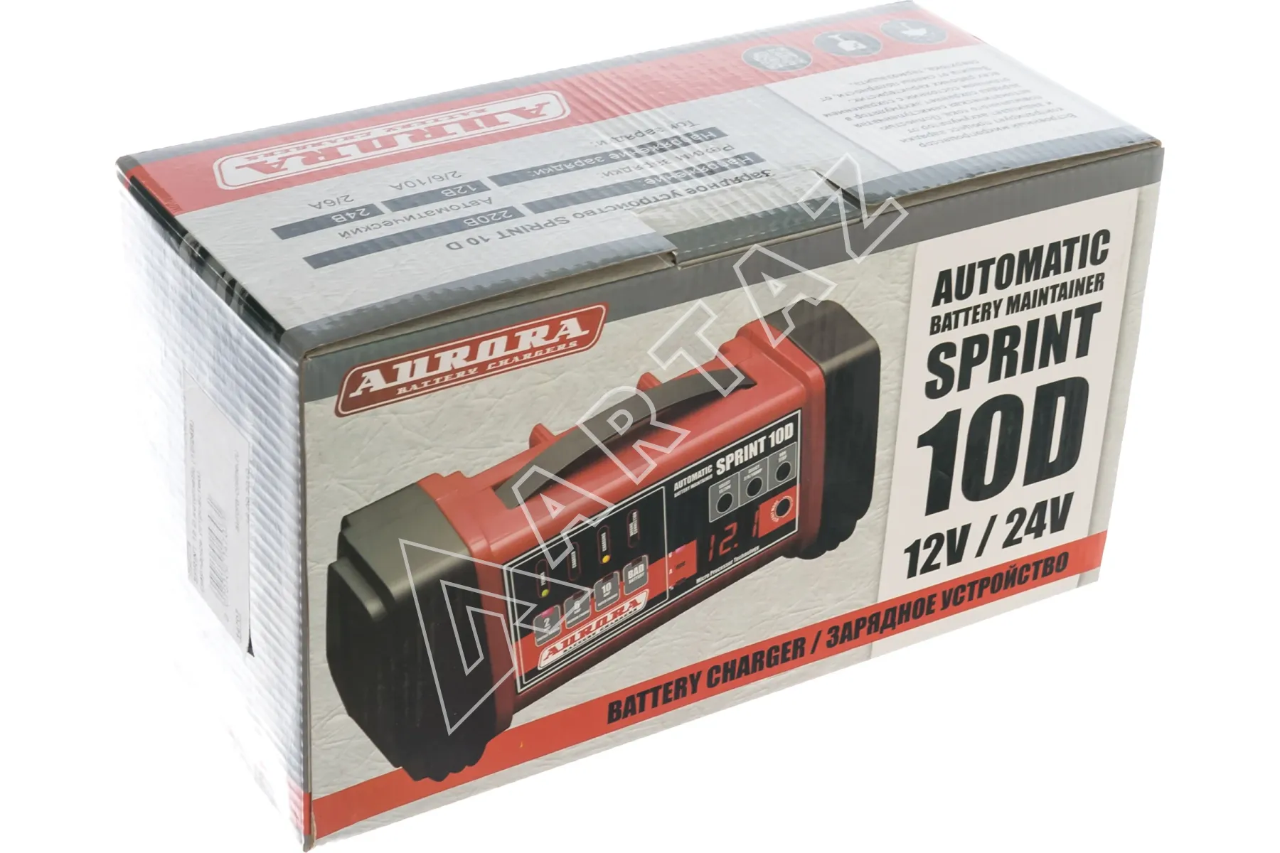 Зарядное устройство 165Вт Aurora SPRINT10 D 14707, минимальный ток заряда 2А, максимальный ток заряда 10А, для свинцовых и гелевых аккумуляторов