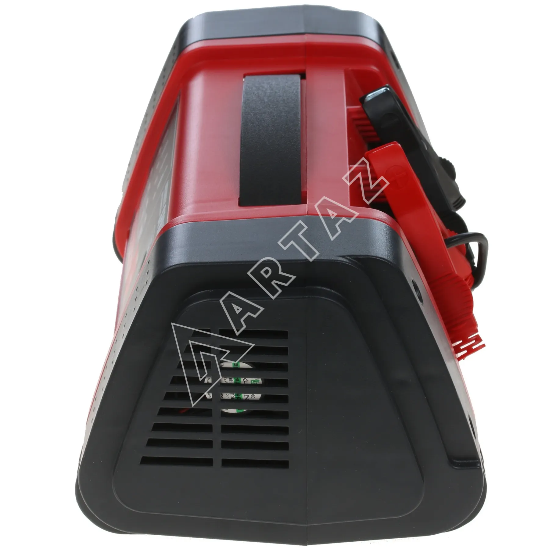 Модель Aurora 14707 работает от сети 220 В и поддерживает аккумуляторы с напряжением 12 и 24 В, емкостью от 2 до 200 Ач. Зарядка проходит в режимах быстрой и медленной работы с возможностью ускоренной зарядки через функцию Boost. Цифровой дисплей отображает текущие параметры зарядки, а встроенные амперметр и вольтметр обеспечивают контроль процесса. Надёжная защита от перегрева, искр, перезарядки и переполюсовки гарантирует безопасность эксплуатации.