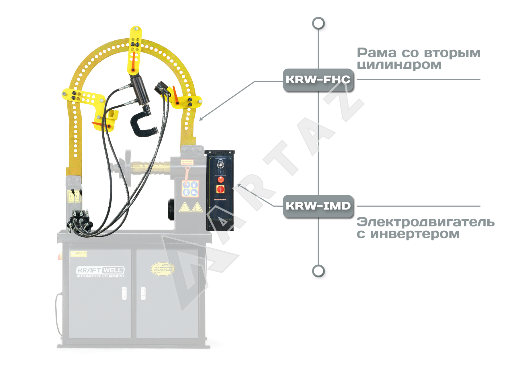 Станок для правки литых дисков от сети 380В, один цилиндр, ручное вращение KraftWell KRW-RS28M