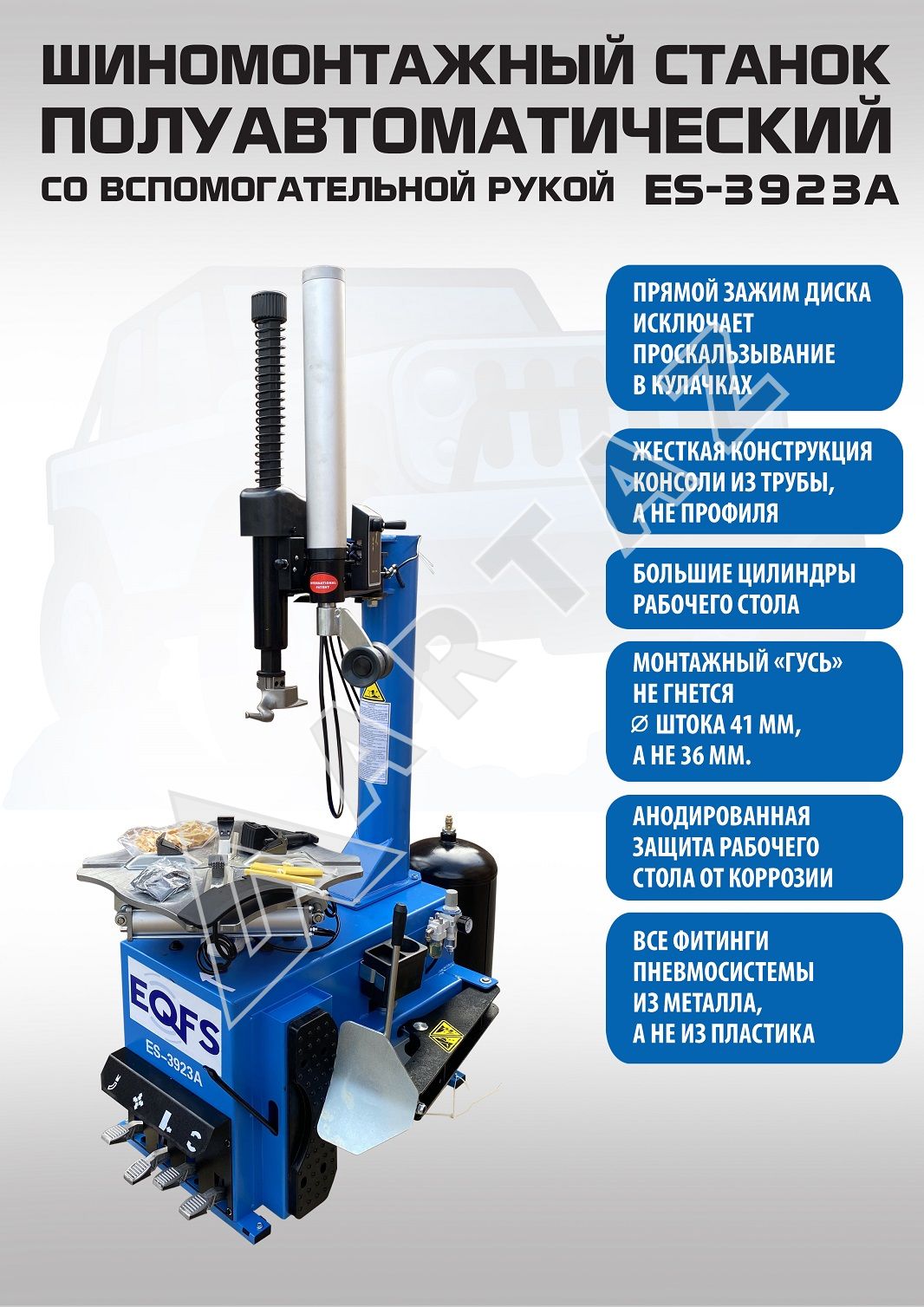 Преимущества шиномонтажного стенда EQFS ES-3923A для легкового транспорта на 220 и 380 вольт