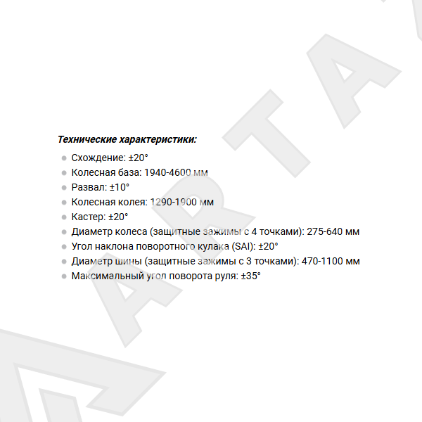 Тип обслуживаемых автомобилей:Легковые , Внедорожники , Кроссоверы