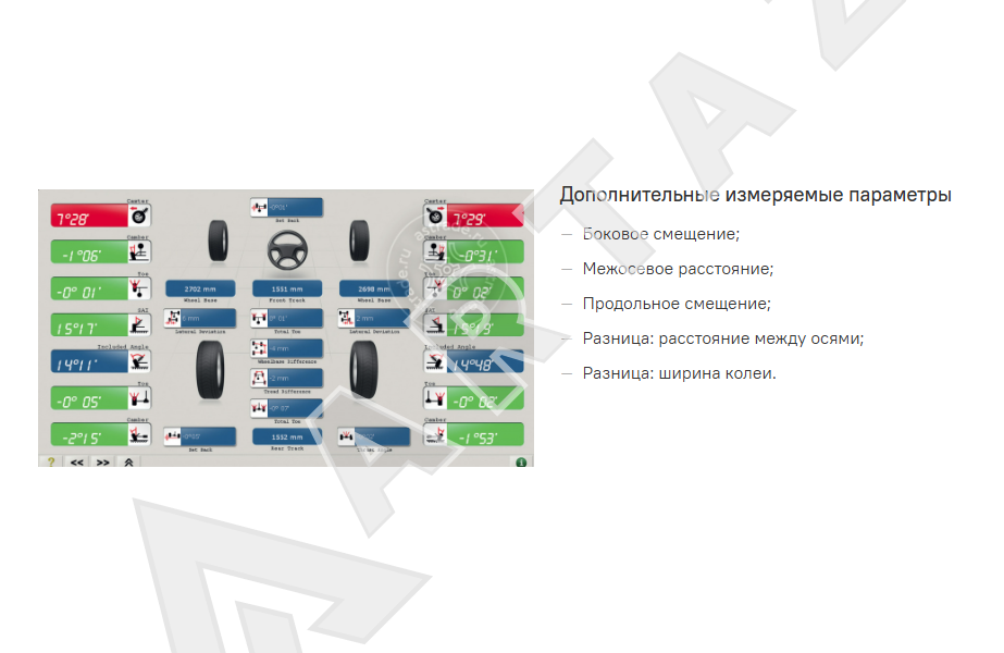 Стенд решает задачи эффективной регулировки колёсной базы, что улучшает управляемость и безопасность транспортного средства. Автоматическое слежение за подъемником и наличие базы данных максимально упрощают производственный процесс, сокращая время на диагностику и обеспечивая соответствие стандартам. Это оборудование подходит как для монтажа на подъемник, так и на ровный пол.