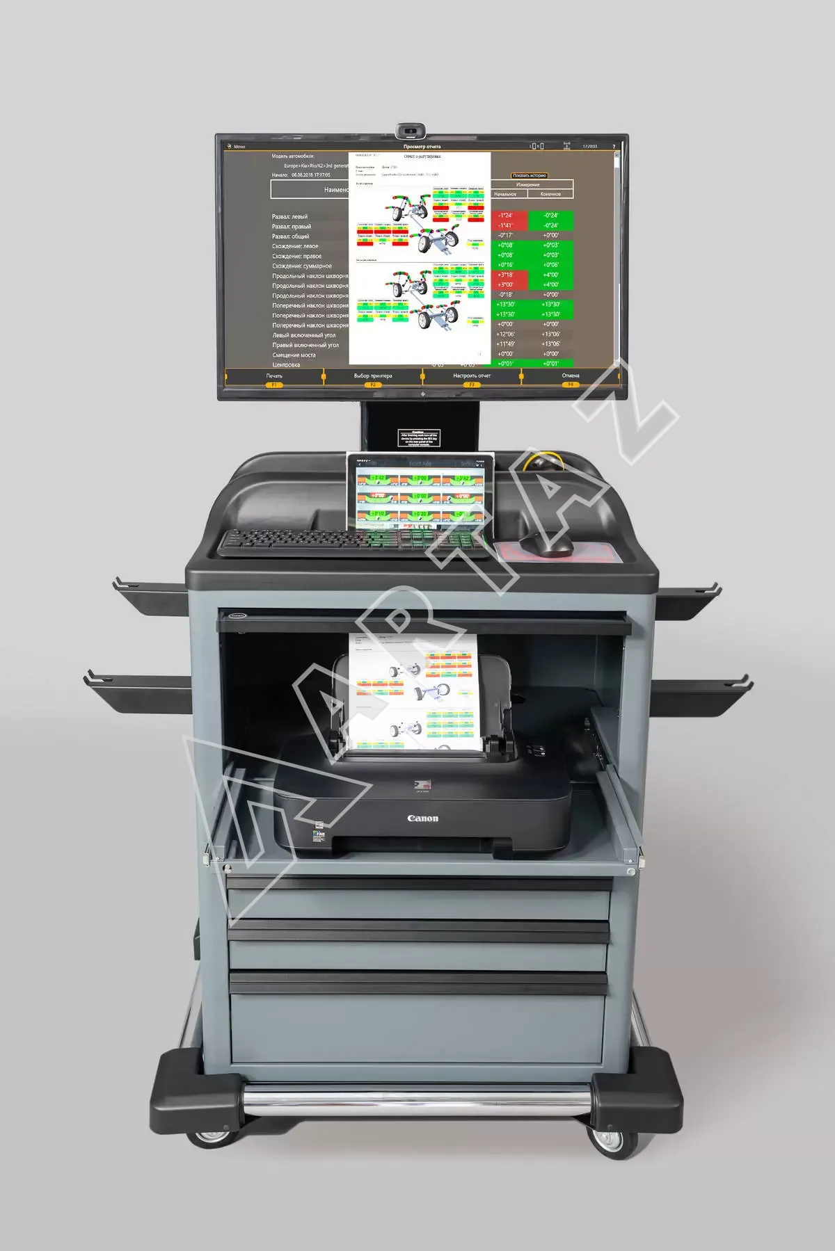 Стенд оборудован четырьмя мобильными высокотехнологичными камерами с разрешением 1.3 и 5 мегапикселей, что обеспечивает высокую точность измерений и быстрый сбор данных. Напольное размещение с применением в ямах позволяет оптимально использовать пространство автосервиса. Благодаря интеллектуальной системе энергосбережения, автономная работа камер достигает до 10 часов. Профессиональная компьютерная стойка серии P обеспечивает эргономичность и удобство управления в процессе диагностики.