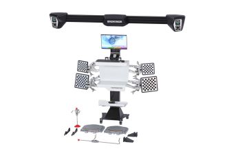 Модель оснащена четырьмя 3D стационарными камерами с разрешением 1,3 и 5 Мп, обеспечивающими высокую точность измерений до 0,01°. Программное обеспечение с базой данных более 40 000 автомобилей постоянно обновляется и позволяет пользователю самостоятельно добавлять актуальную информацию. Монитор и компьютер собраны в одном блоке на колонне, что повышает надежность и удобство эксплуатации. Стенд поддерживает работу без использования электронных поворотных кругов, что упрощает процедуру замера максимального угла поворота колес.