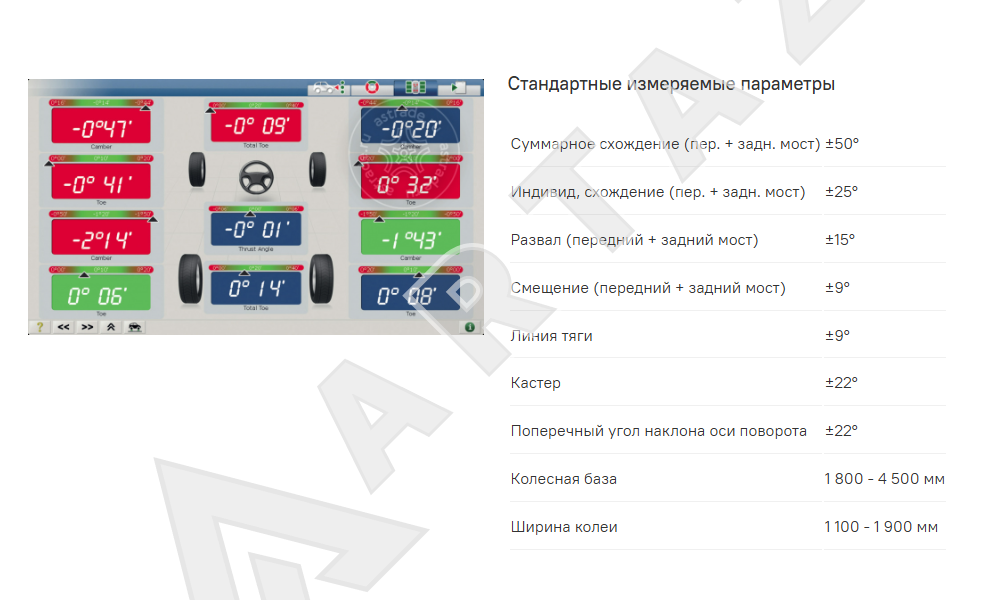 - Тип стенда: 3D развал-схождение с двумя камерами