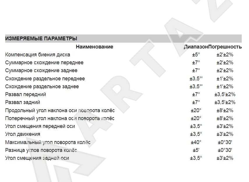 Данное устройство решает задачи измерения и настройки параметров колесного развала и схождения, что обеспечивает безопасность и оптимальный износ шин, улучшает управляемость автомобиля и снижает расход топлива. Постоянное обновление базы данных и режим самодиагностики поддерживают высокую точность и надежность работы даже при интенсивном использовании.