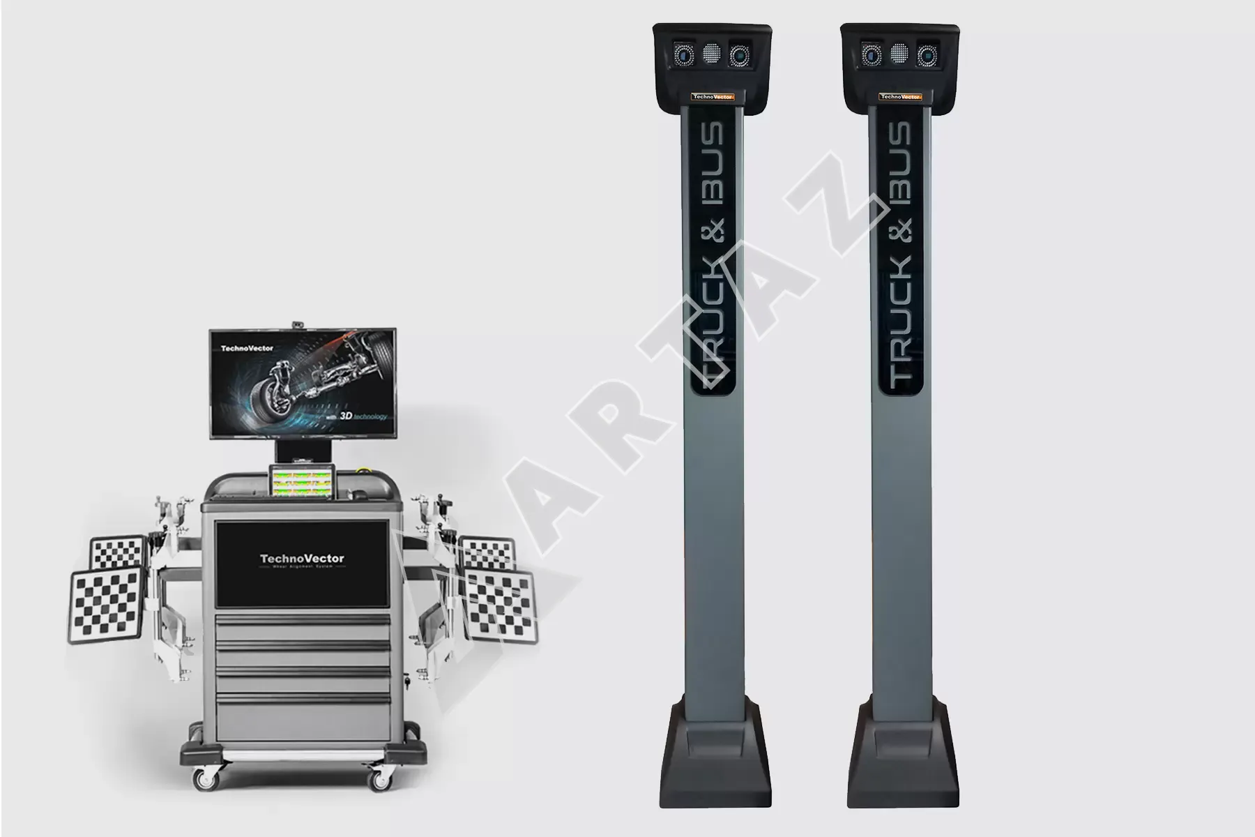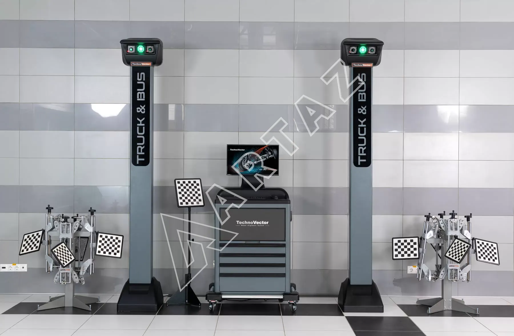 Стенд развал-схождения Техновектор P 7204 HTS6 — профессиональное оборудование, предназначенное для регулировки углов установки колес многосерийных грузовых автомобилей, тягачей, автобусов, прицепов и полуприцепов. Используется на сервисных станциях и в гаражах, обеспечивая высокую точность и скорость работ.