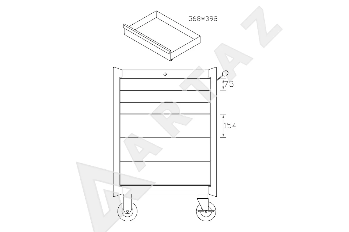 - Тележка инструментальная с шестью выдвижными отделениями (3 ящика, 3 полки)