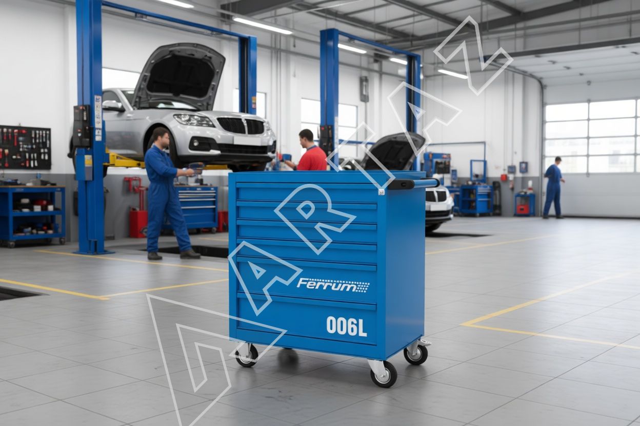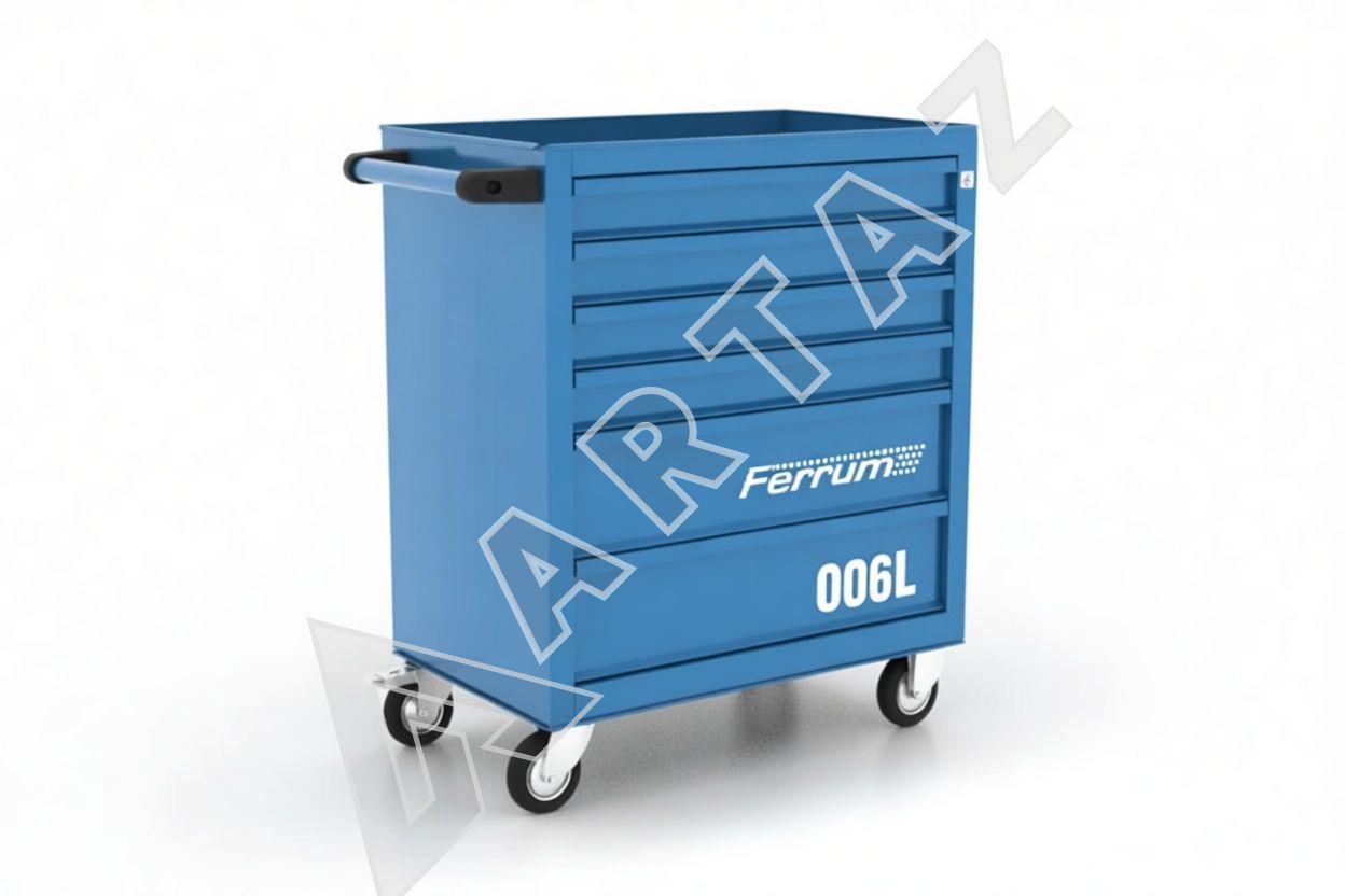Тележка инструментальная на колесах FERRUM 02.006L-5015 синяя с 6 выдвижными ящиками для удобного хранения и комфортной работы