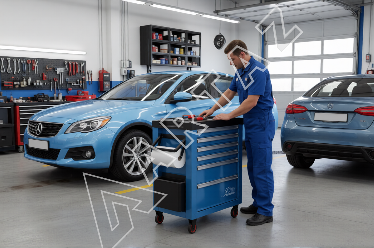 Эта тележка оснащена 6 выдвижными ящиками разного размера, выдерживающими нагрузку до 50 кг каждый, и совокупной грузоподъемностью 270 кг. Надежные подшипниковые направляющие обеспечивают плавное и долговечное скольжение ящиков. Центральный замок гарантирует сохранность содержимого, а фиксация колесиков повышает устойчивость при работе. Тележка выполнена из прочной сварной конструкции с порошковым покрытием, которое защищает от царапин и коррозии, сохраняя презентабельный внешний вид долгие годы. Плоская столешница с лотком дает дополнительное удобство для размещения рабочих материалов и инструментов. Благодаря системе хранения с полками и ящиками все инструменты упорядочены и под рукой именно тогда, когда это необходимо. Тележка представлена в классическом синем цвете и выпускается в России с годовой гарантией, доступна на складах в Москве и Санкт-Петербурге.