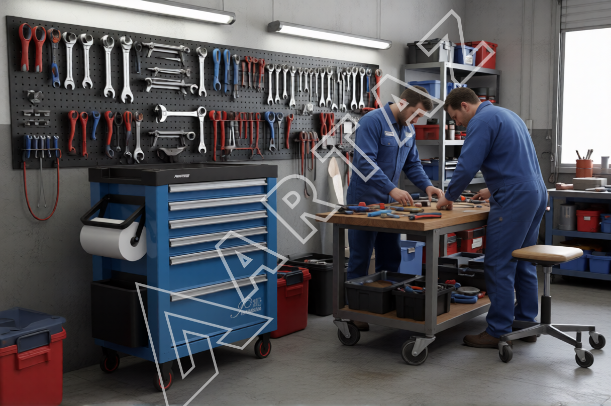 Тележка инструментальная FERRUM 12.306/1-5015 с 6 выдвижными ящиками и системой RFS – удобное хранение инструментов и высокая грузоподъемность