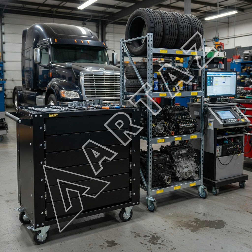 - Мобильность: Четыре усиленных колеса (два из которых — поворотные с тормозом) обеспечивают легкое перемещение по цеху даже при полной загрузке.