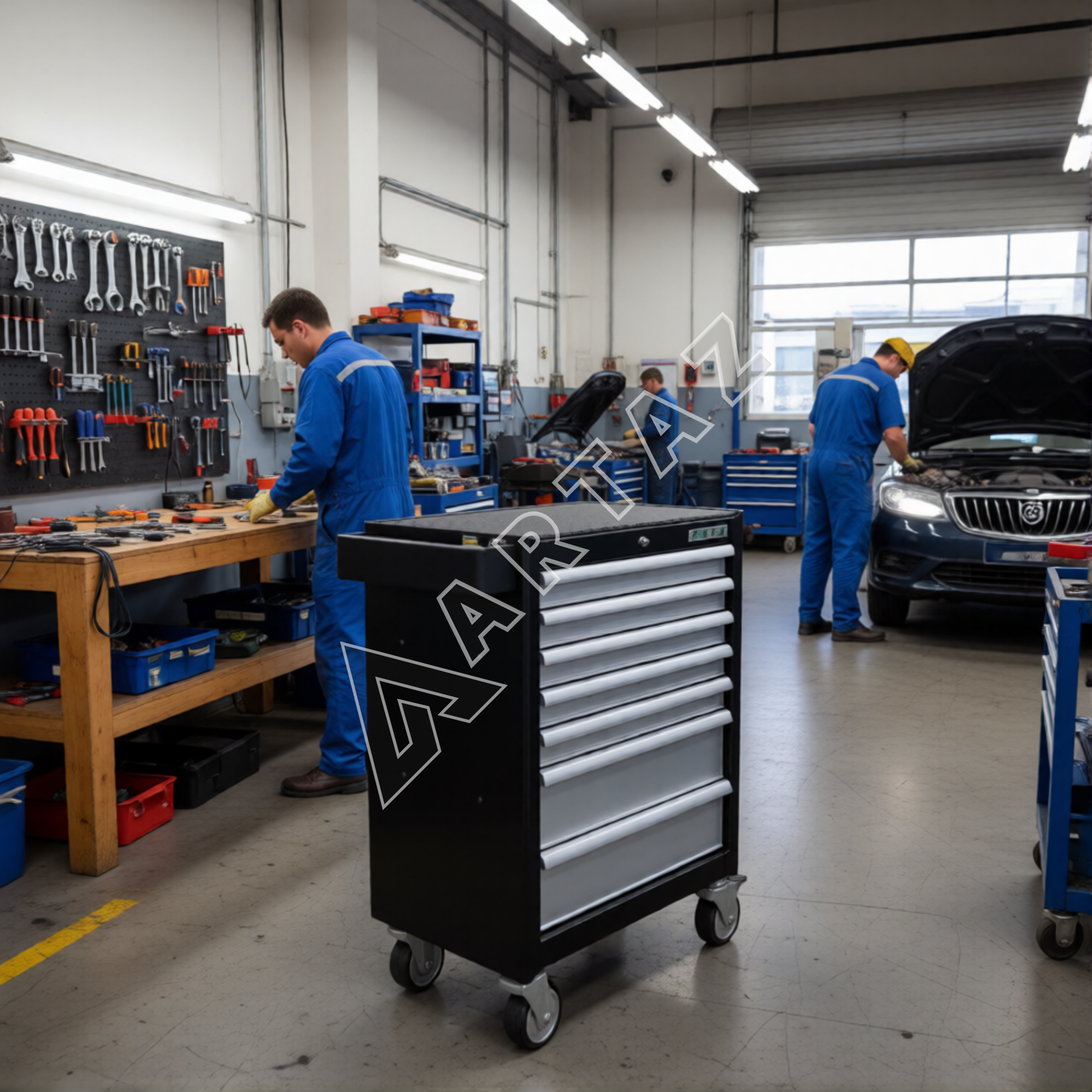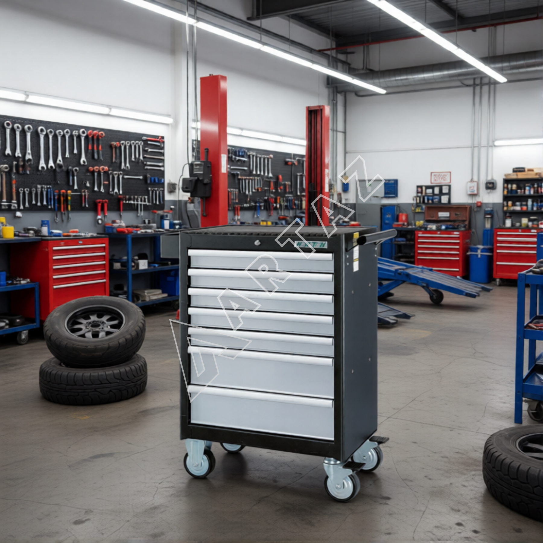 - Удобное хранение инструментов благодаря 7 ящикам с разграничением на полки и выдвижные ящики
