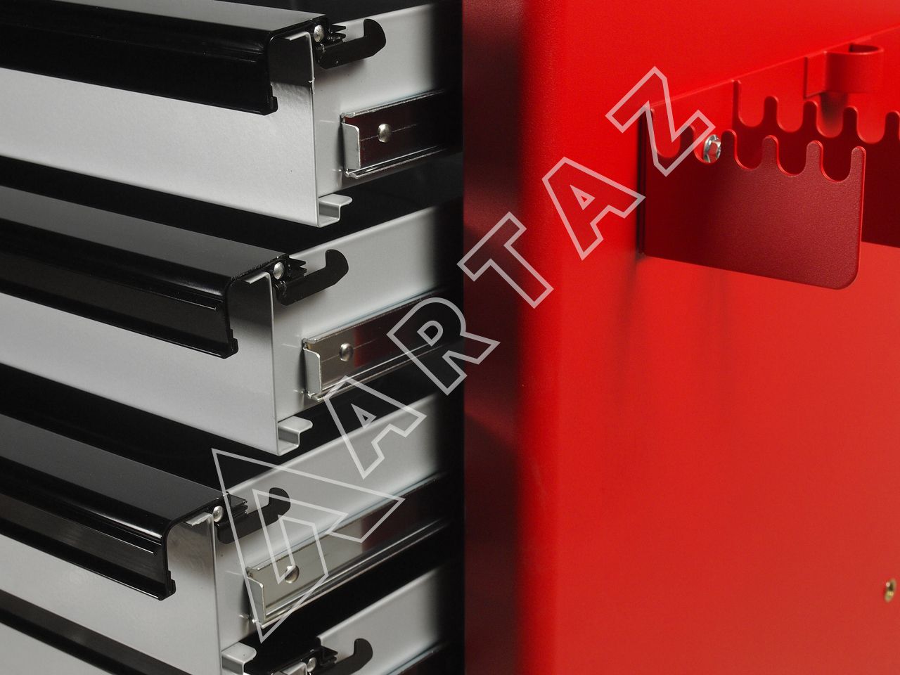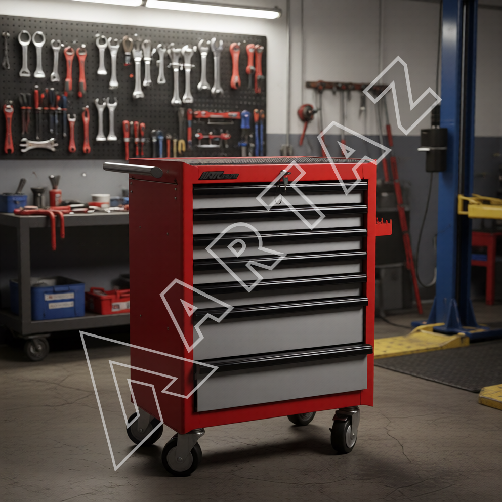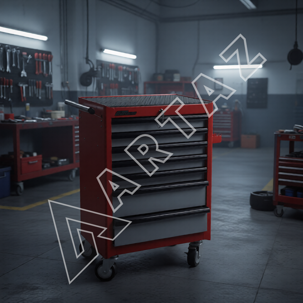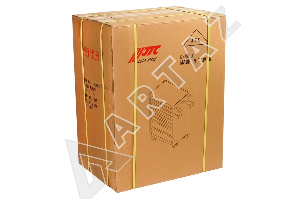 Тележка JTC-3931 выполнена из прочного сварного металла с защитным порошковым покрытием, что обеспечивает долговечность и устойчивость к механическим повреждениям. Ее 5 плоских и 2 глубоких ящика оснащены роликовыми направляющими и надежными фиксаторами, предотвращающими непреднамеренное открытие. Центральный замок и дополнительные запирающиеся замки на каждом ящике обеспечивают безопасность и защиту от доступа посторонних.