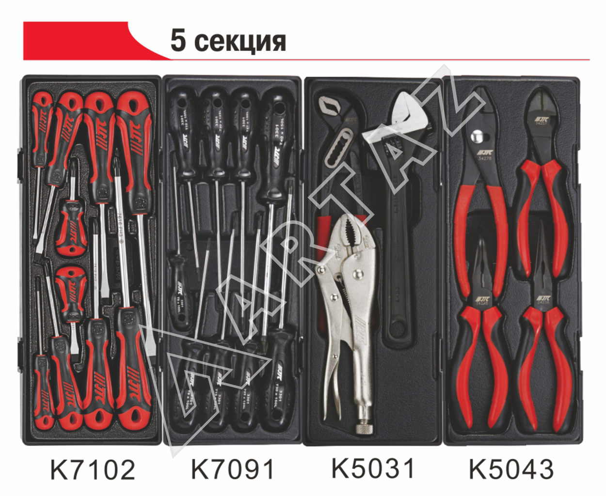 - Тележка инструментальная JTC-3931 с 7 секциями (5 плоских и 2 глубоких ящика)