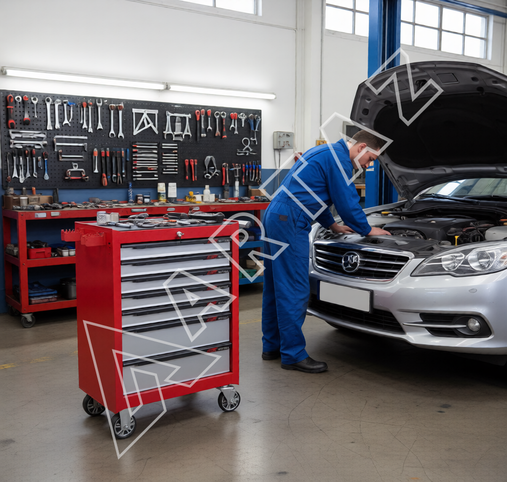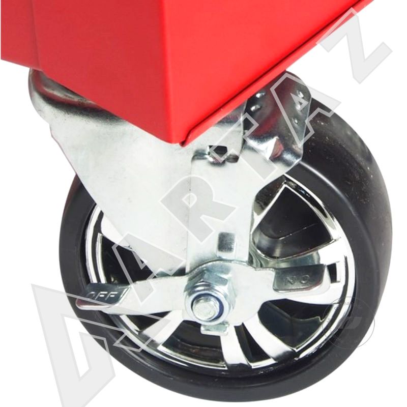 Тележка инструментальная 7 секций красного цвета от бренда JTC, произведённая на Тайване, сочетает в себе практичность и прочность. Она оснащена 5 выдвижными полками и 2 вместительными ящиками на роликовых направляющих, которые обеспечивают плавное скольжение и легкий доступ к инструментам. В каждой выдвижной секции установлен дополнительный замок, а также центральный замок защищает весь комплект от несанкционированного доступа. Тележка изготовлена из сварной конструкции с порошковым защитным покрытием, что гарантирует устойчивость к механическим повреждениям и долговечность при активной эксплуатации.
