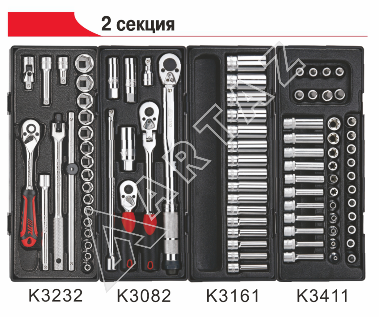 - Высокая вместимость – 10 секций и 578 предметов для полного комплекта инструментов