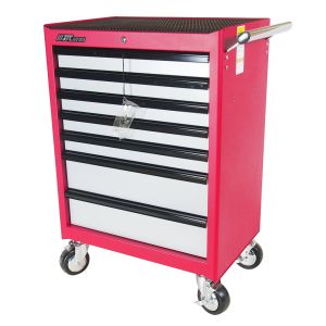 Эта тележка совмещает в себе удобство и надежность: пять плоских и два глубоких ящика с роликовыми направляющими обеспечивают легкий доступ и удержание инструментов на месте. Центральный замок вместе с дополнительными замками в каждом ящике гарантирует сохранность содержимого. Конструкция с порошковым покрытием защищена от повреждений, а фиксируемые колеса диаметром 127 мм позволяют легко перемещать тележку даже на сложных поверхностях.
