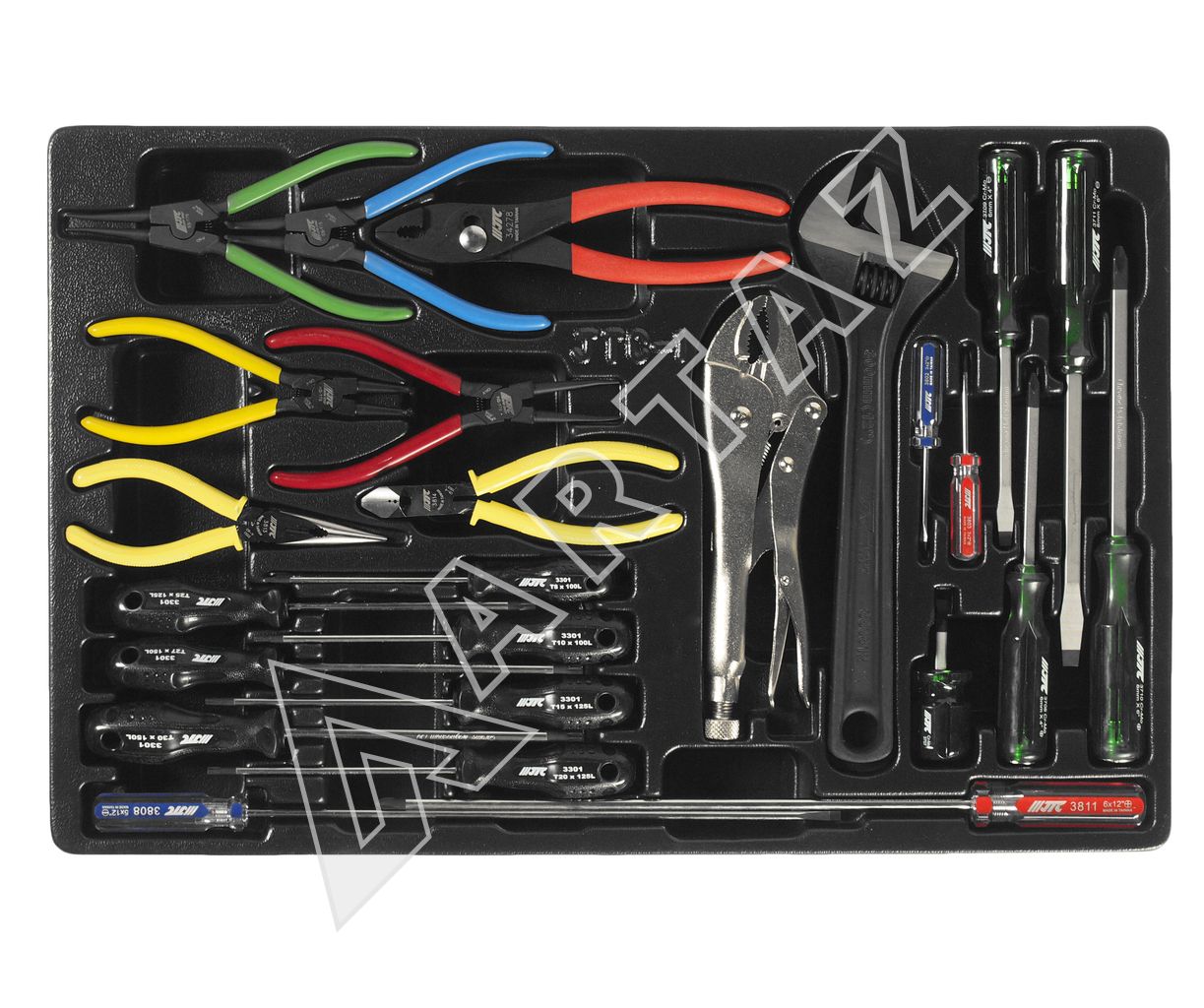 - Набор инструментов JTC-39311: отвертки, разводной ключ, различные виды клещей и бокорезы