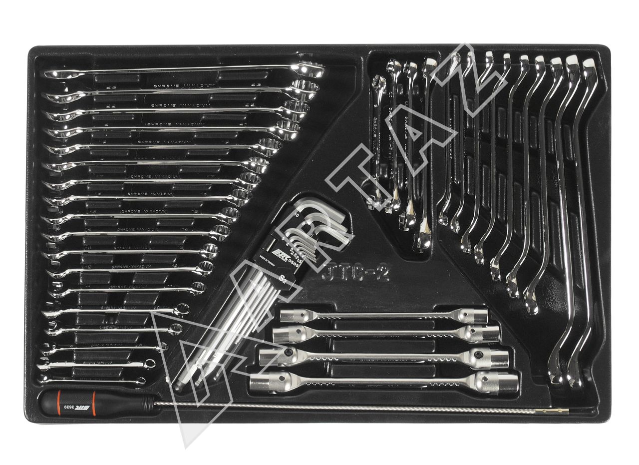 - Набор инструментов JTC-39312: рожково-накидные ключи, торцевые ключи, шестигранники, магнит на гибком держателе