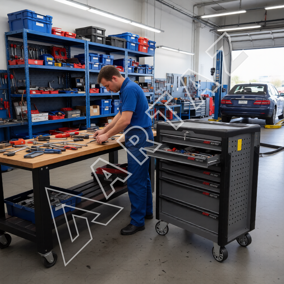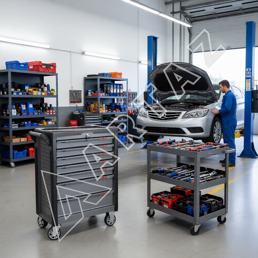 Эта тележка оснащена пятью выдвижными полками и двумя вместительными ящиками с нагрузкой до 40 кг каждый, что позволяет максимально эффективно разместить разнообразный набор инструментов. Роликовые направляющие с функцией плавного и бесшумного хода обеспечивают надежность и удобство эксплуатации. Центральный замок гарантирует защиту содержимого от несанкционированного доступа. Конструкция выполнена из прочной сварной стали с порошковым покрытием, что гарантирует долгий срок службы и устойчивость к повреждениям и коррозии.