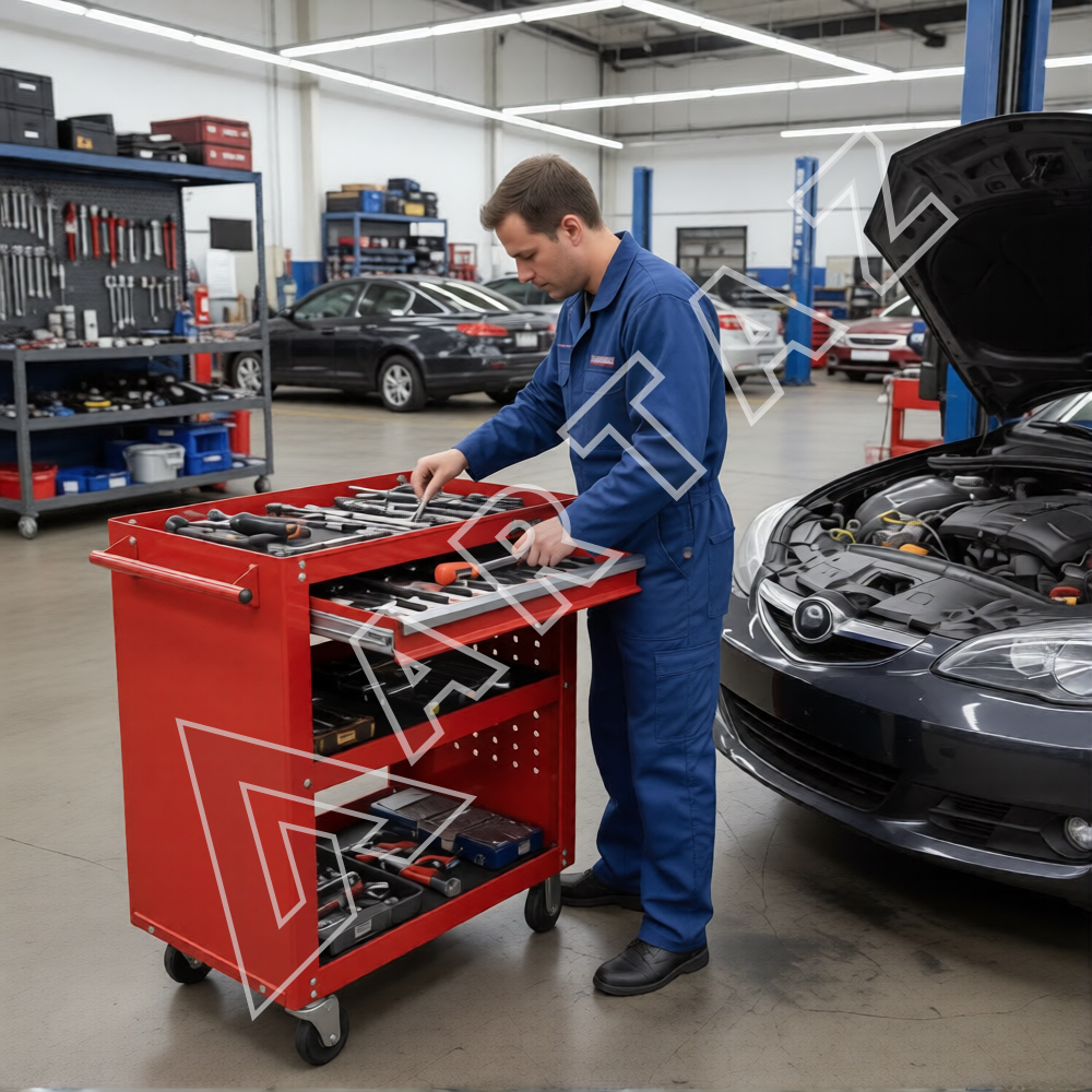 Это надежное решение для автосервисов, станций технического обслуживания и производственных помещений, где важна практичность и долговечность. Конструкция из порошковой краски гарантирует защиту от коррозии и повреждений, а прочные колеса с фиксацией обеспечивают мобильность и устойчивость тележки. Выдвижной ящик с подшипниковыми направляющими выдерживает нагрузку до 20 кг, что позволяет хранить даже тяжелые инструменты. Общая грузоподъемность тележки достигает 100 кг, что делает ее оптимальным выбором для комплексного оснащения рабочих зон. Сборная конструкция упрощает транспортировку и хранение в периоды между работами.