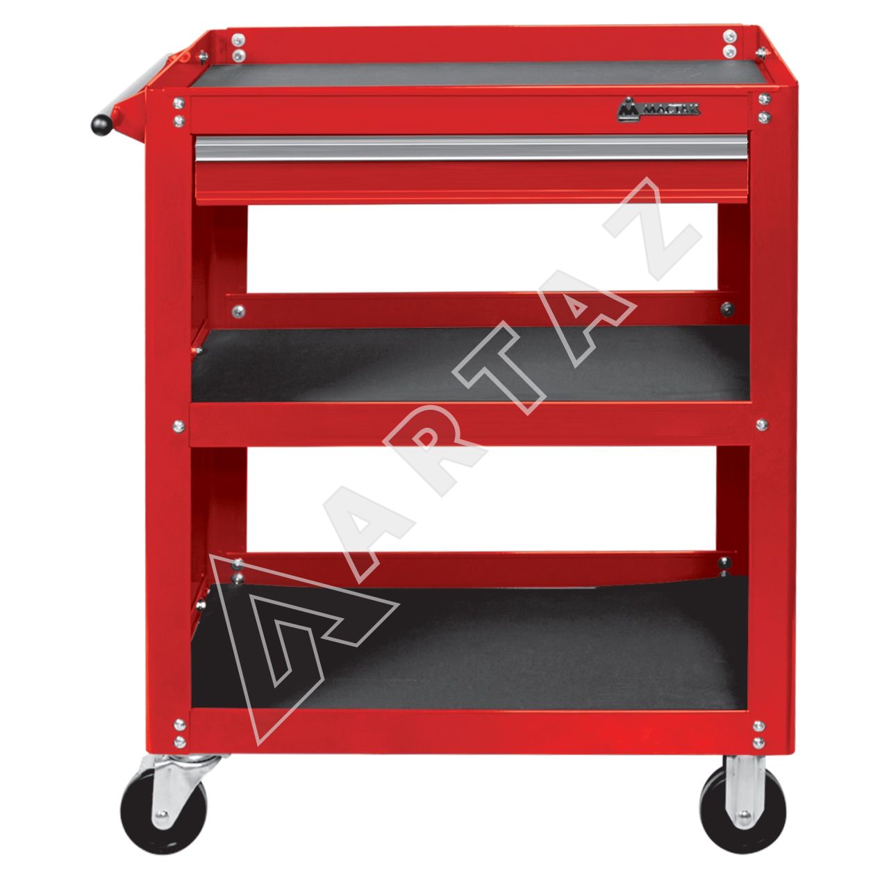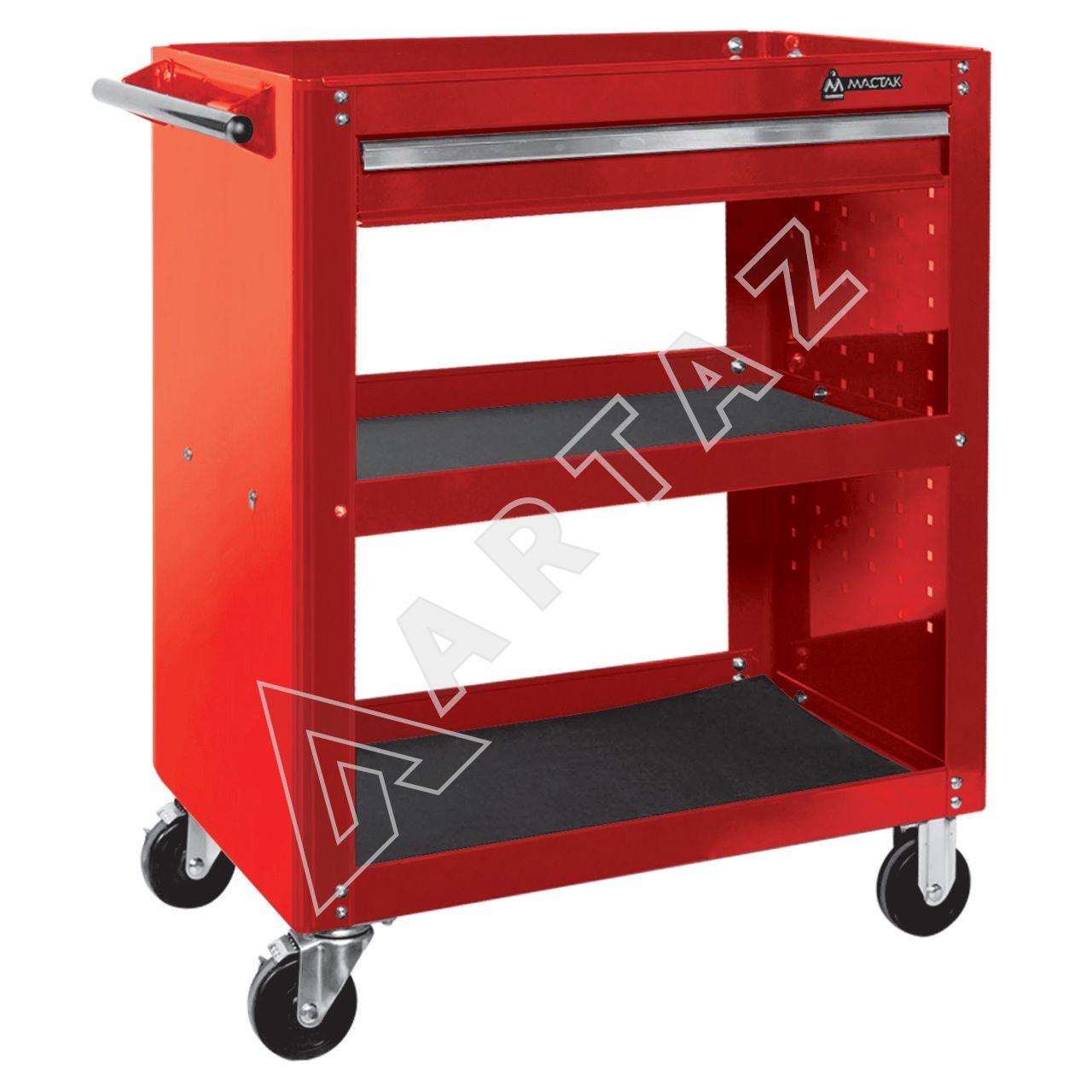 Тележка МАСТАК 520-01580R комбинирует компактность и вместительность — три открытые полки и выдвижной ящик обеспечивают быстрый доступ к инструментам и материалам, облегчая организацию рабочего пространства и повышая эффективность труда.