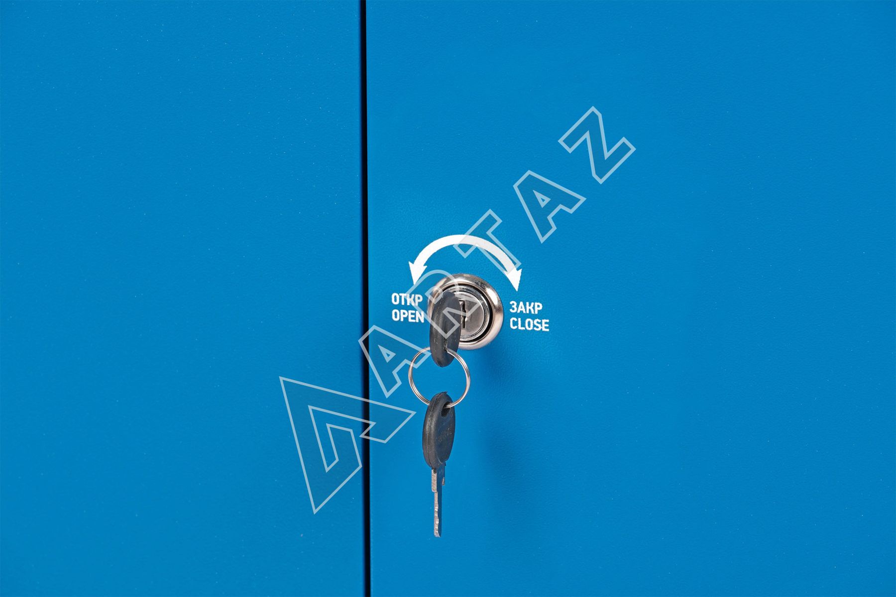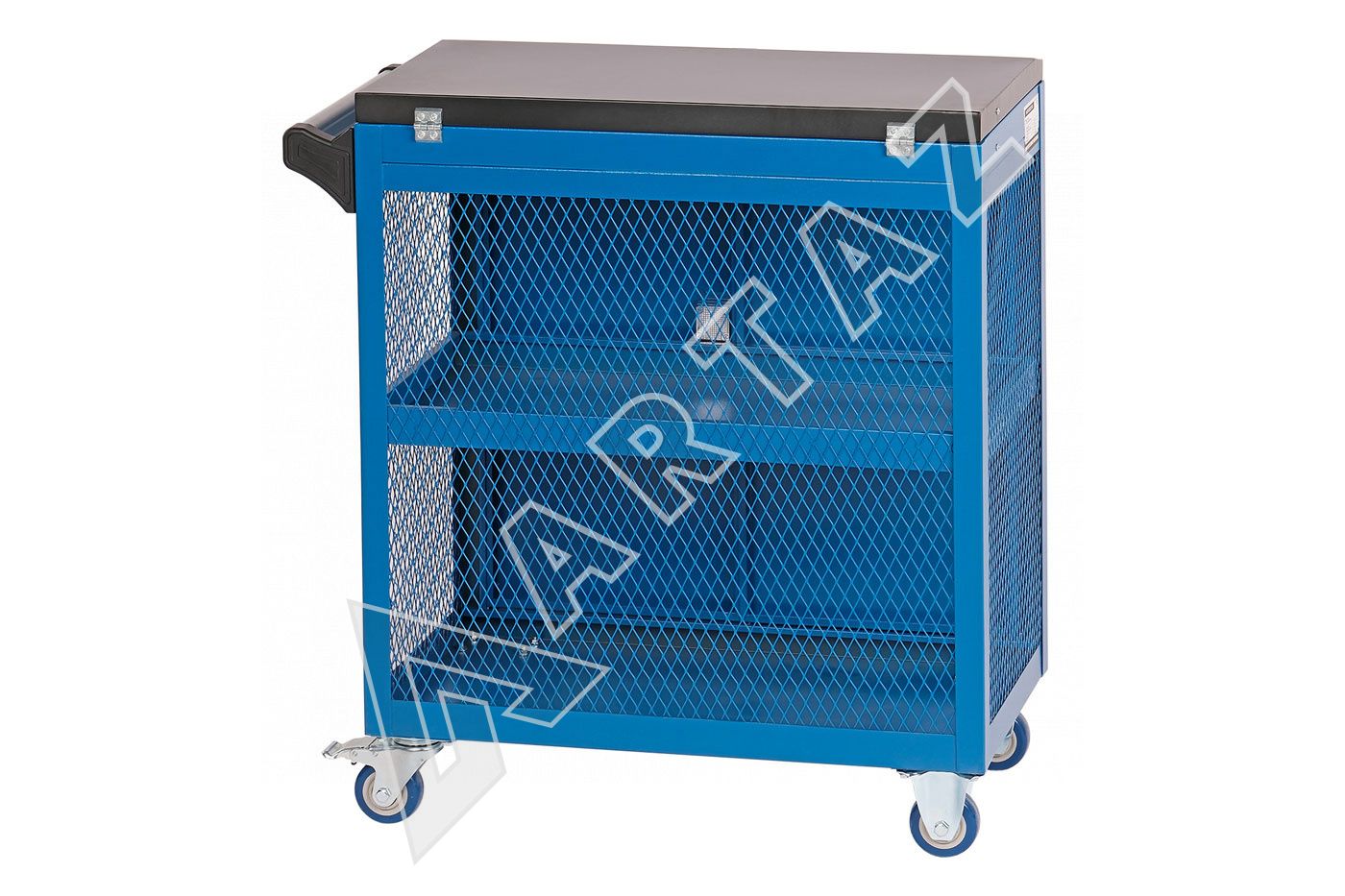 - Три вместительные полки с дверцами и центральным замком для надежного хранения инструментов.