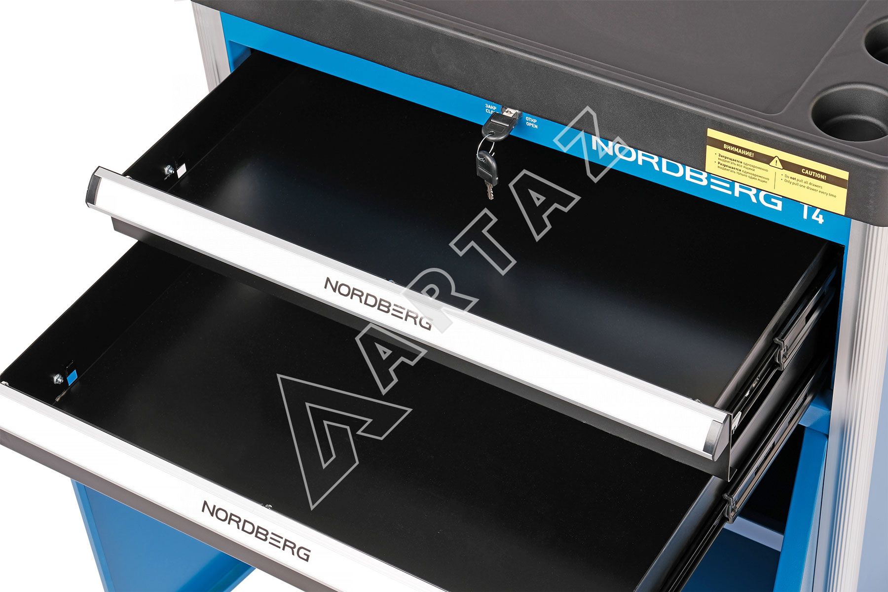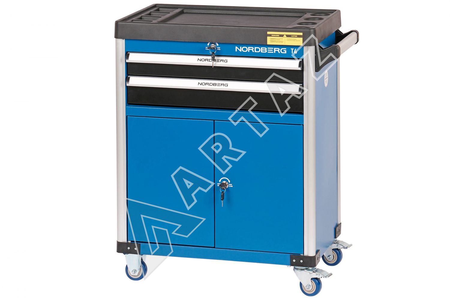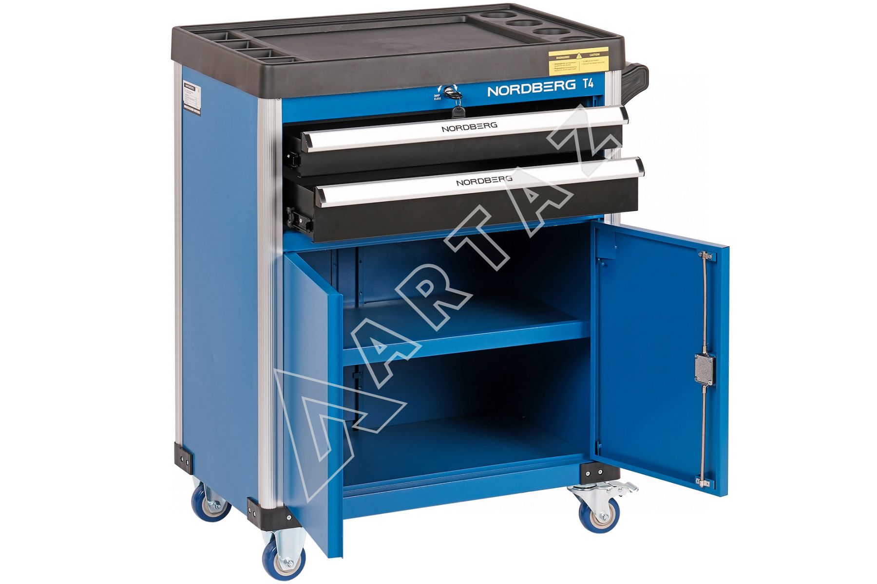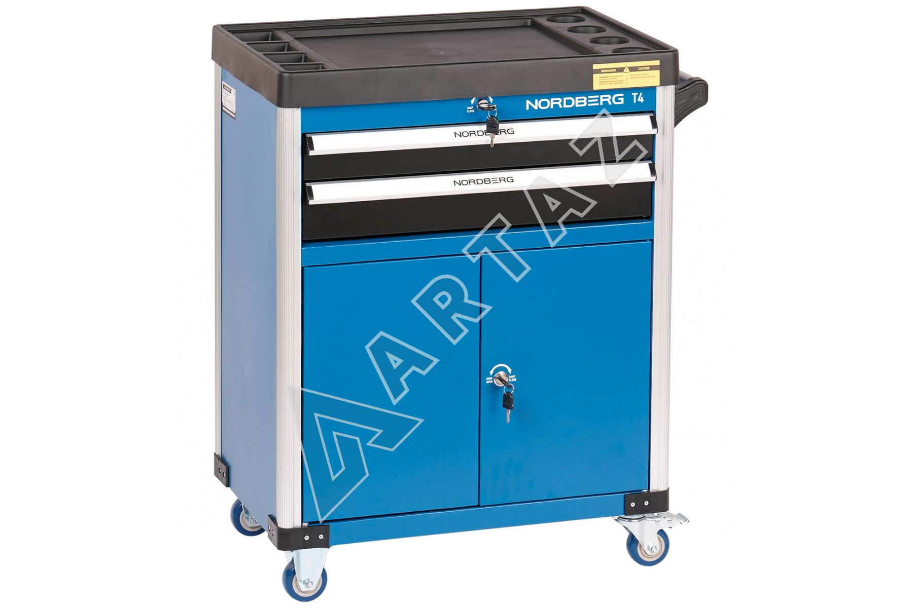 T4 Nordberg Тележка инструментальная на колесах с 2 выдвижными ящиками и закрывающимися полками