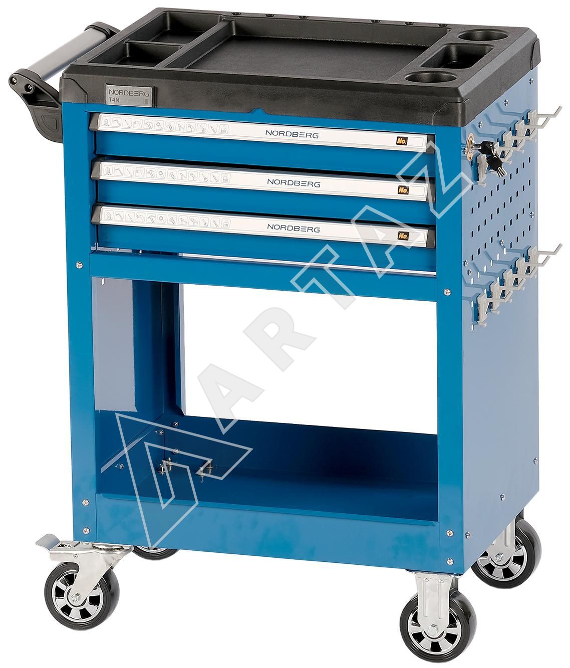 T4N Nordberg инструментальная тележка на колесах с 3 выдвижными ящиками и открытым отсеком