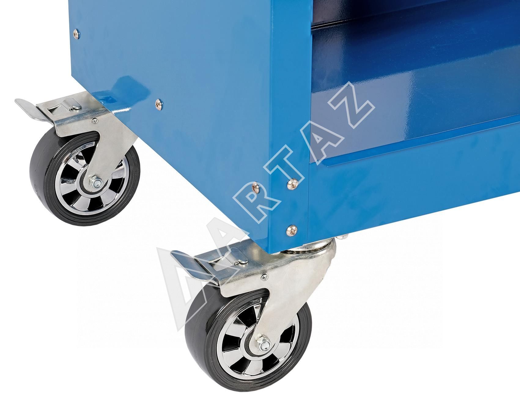 - Фиксируемые колёса обеспечивают устойчивость на месте работы и безопасность перемещения