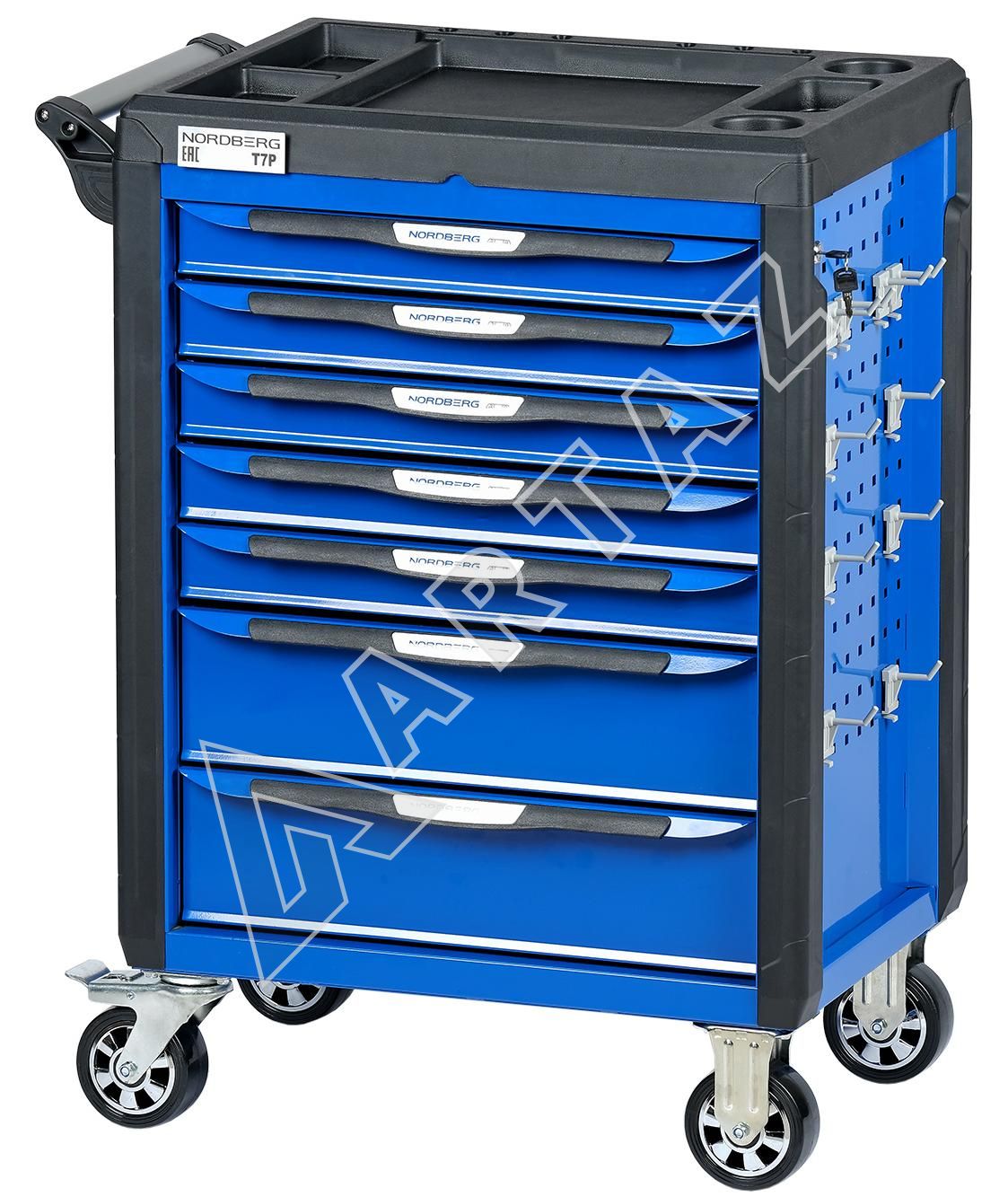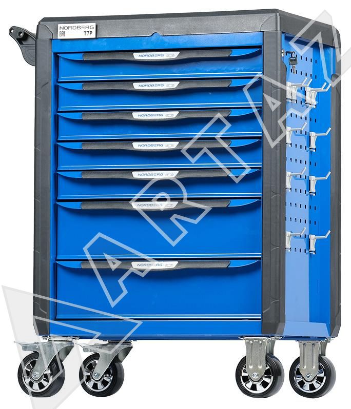 Тележка инструментальная Nordberg T7P, 7 ящиков, с системой защиты от опрокидывания, синяя