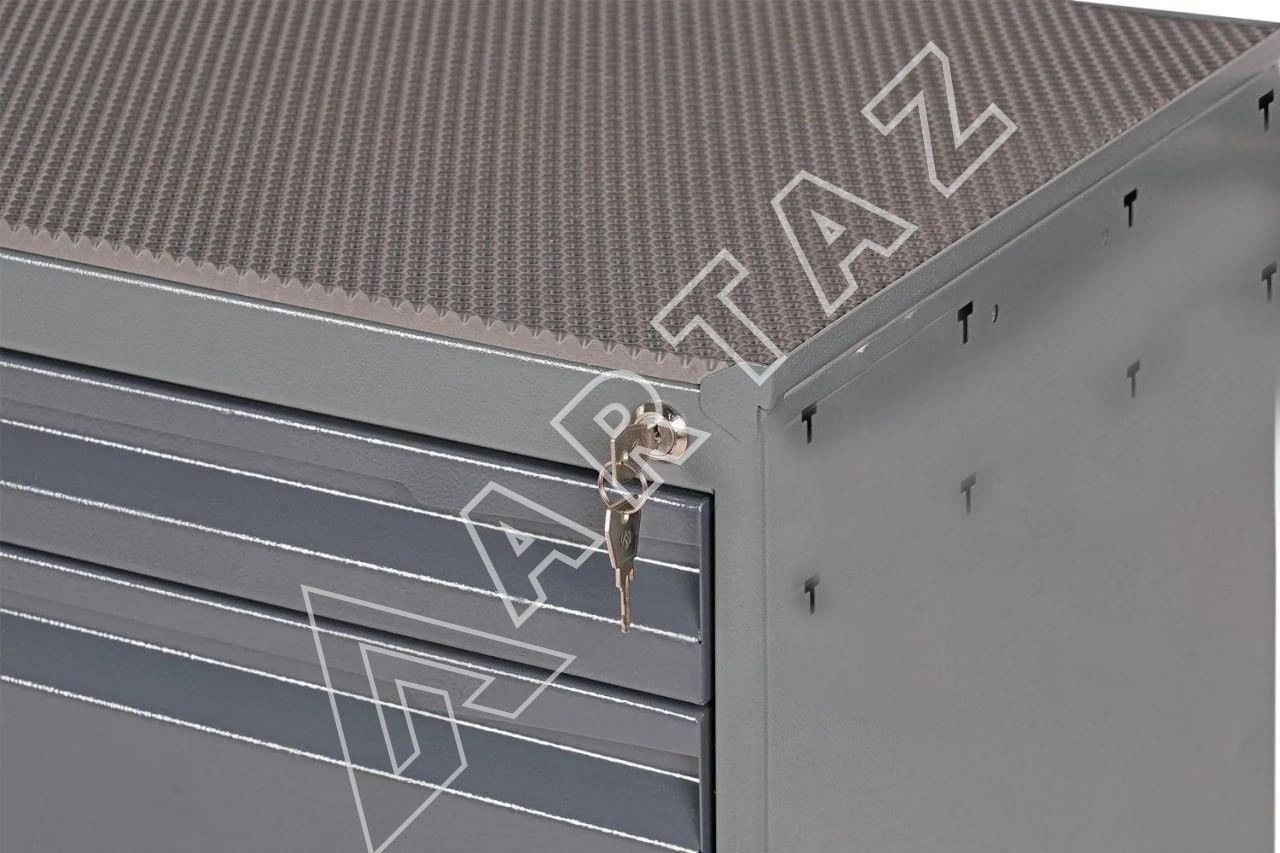 Плоский лоток-столешница с верхним ковриком из EVO материала служит удобной площадкой для подготовки и размещения мелких деталей, исключая их скольжение и повреждения. Специальная сварная конструкция с толщиной металла 1,5 мм гарантирует устойчивость и надежность даже при интенсивной нагрузке.