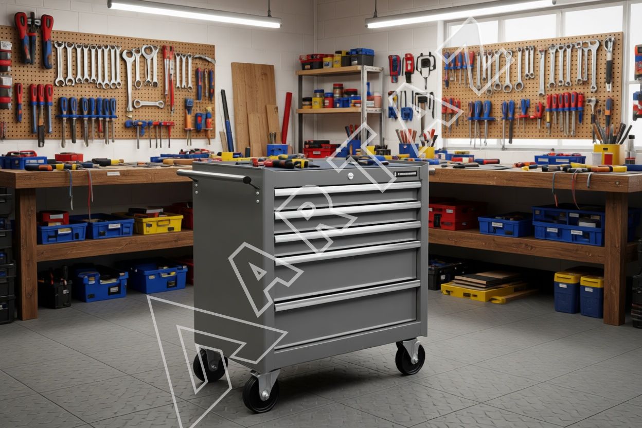 Тележка BTD-271051CIS сочетает прочность и мобильность, благодаря прочной сварной конструкции и большим колесам с фиксацией. Исполнение с надежной порошковой окраской обеспечивает долговечность и защиту от коррозии, что особенно важно при интенсивном использовании. 5 удобных ящиков, оборудованных подшипниковыми направляющими и доводчиками, выдерживают значительные нагрузки до 40 кг каждый, гарантируя надежное хранение и легкое открытие. Система хранения включает ложементы, полки и плоский лоток, что позволяет грамотно организовать инструменты всех видов и размеров. Центральный замок обеспечивает безопасность содержимого, а компактные габариты позволяют использовать тележку в мастерских любого масштаба. Цвет серый подчеркнет профессиональный стиль рабочего пространства.