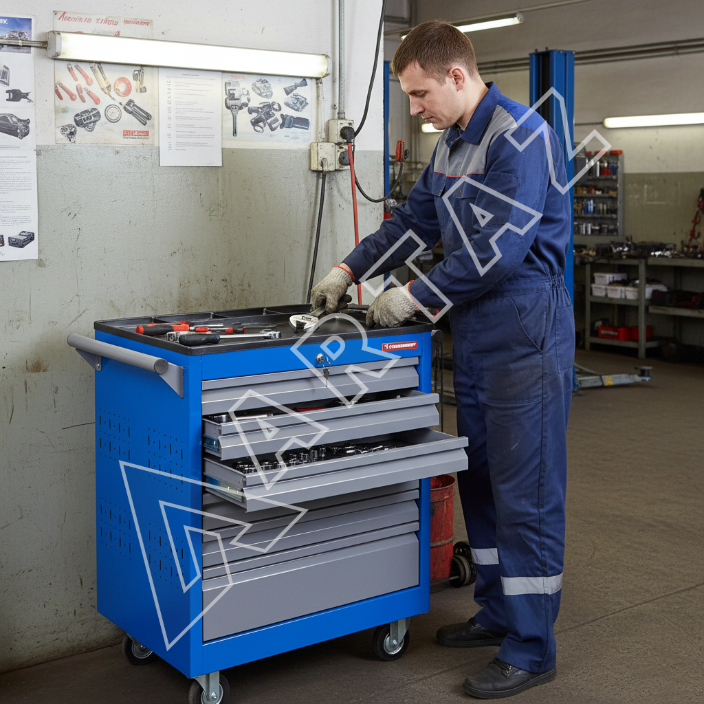 - Инструментальная тележка на колесах с 6 ящиками