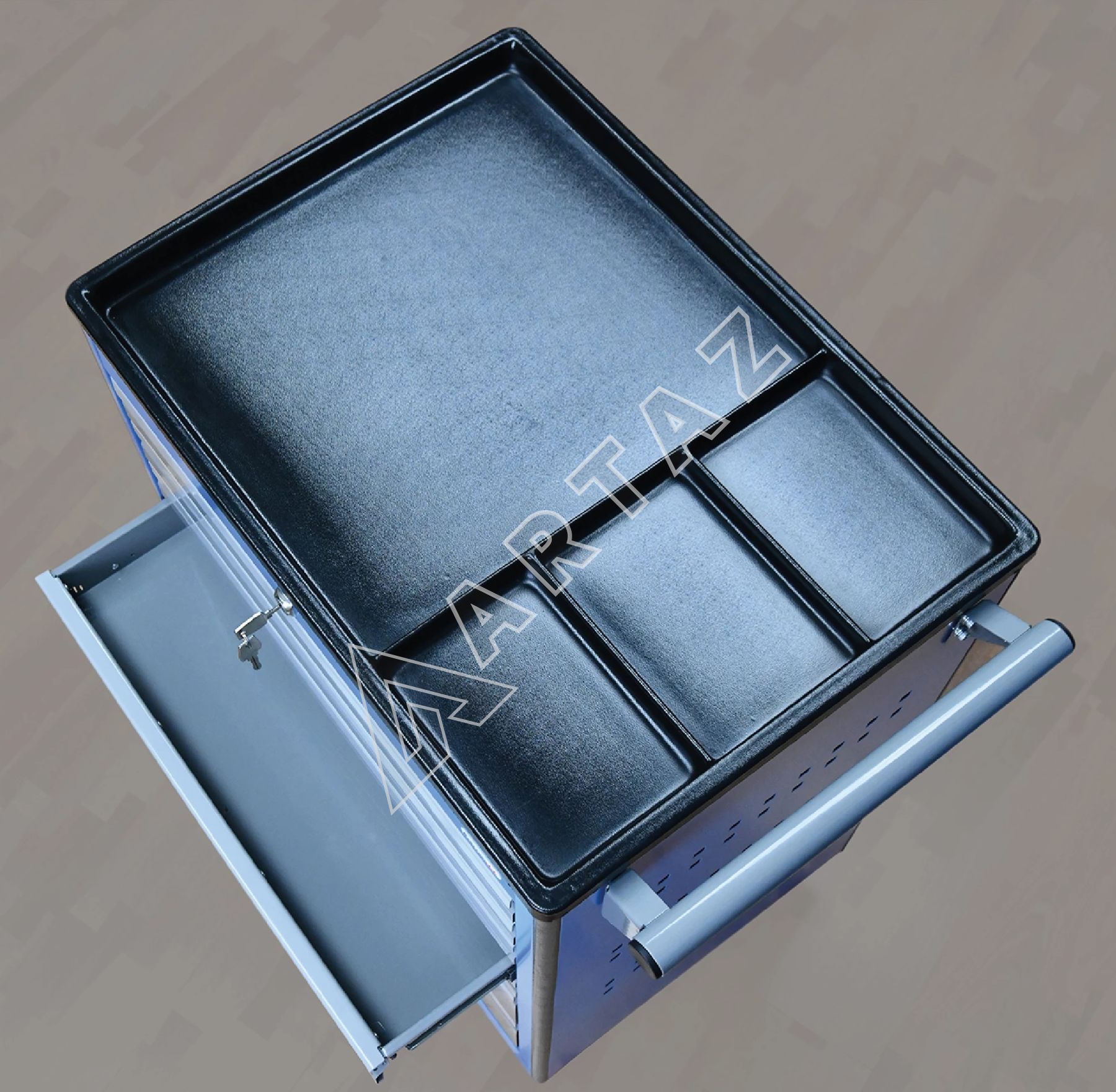 - Тележка с 5 выдвижными ящиками (3 полки и 2 больших ящика).