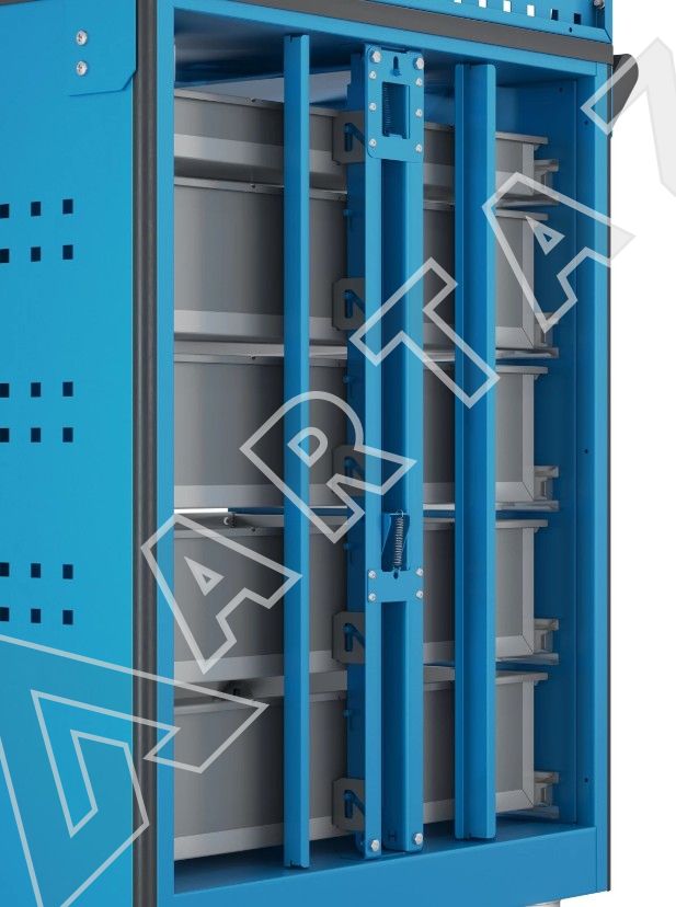 Эта тележка оснащена 8 выдвижными отделениями с нагрузкой до 220 кг, что обеспечивает вместительность и прочность. Металлический корпус с прочным порошковым покрытием защищает от коррозии и механических повреждений. Использование подшипниковых направляющих обеспечивает плавное и бесшумное выдвижение ящиков. Центральный замок и система антиоткрывания гарантируют сохранность содержимого и предотвращают случайное выпадение при передвижении. Все колесики с фиксацией на 100 мм обеспечивают устойчивость и мобильность тележки на любой поверхности. Размеры и эргономика модели разработаны с учетом удобства эксплуатации, а конструкция из качественного металла толщиной до 1,5 мм гарантирует долговечность.