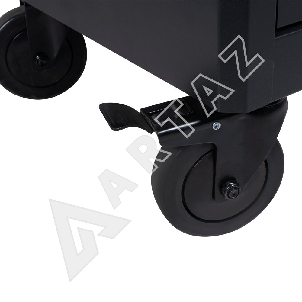 OPT-717E оснащена 7 удобными секциями для хранения, включая 5 выдвижных полок и 2 ящика с подшипниковыми направляющими, что обеспечивает плавное открытие и надежную фиксацию. Конструкция из прочной сварной стали с порошковым покрытием выдерживает нагрузку до 170 кг, гарантируя долгий срок службы. Центральный замок и система защиты от опрокидывания повышают безопасность и удобство использования. Колеса с фиксаторами обеспечивают маневренность и устойчивость при работе. Вместительный набор из 298 инструментов позволяет выполнять широкий спектр задач, делая OPT-717E незаменимой в автосервисе, мастерской или производстве.