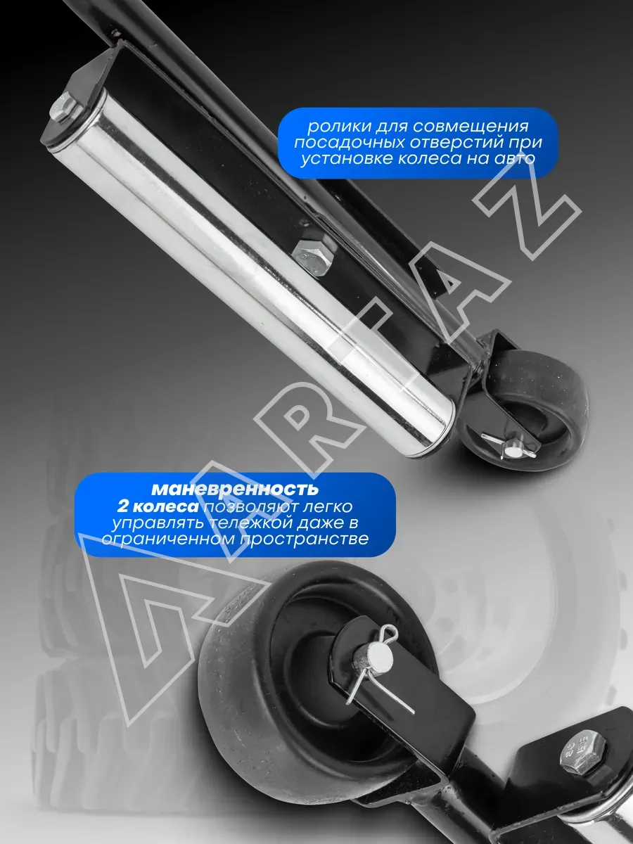 Надежная конструкция обеспечивает устойчивую фиксацию колеса при перемещении, минимизируя вероятность падения и повреждений. Эргономичный ручной привод и невысокое усилие на рукоятке облегчают работу оператора и снижают усталость при многократных перемещениях. Компактные габариты и малый вес упрощают хранение и эксплуатацию в ограниченном пространстве мастерской.