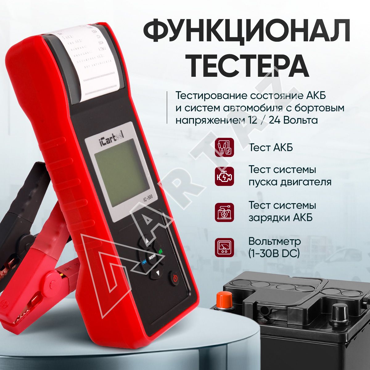 IC-500 Надежный тестер аккумуляторов 12/24 В с цифровым индикатором и встроенным принтером