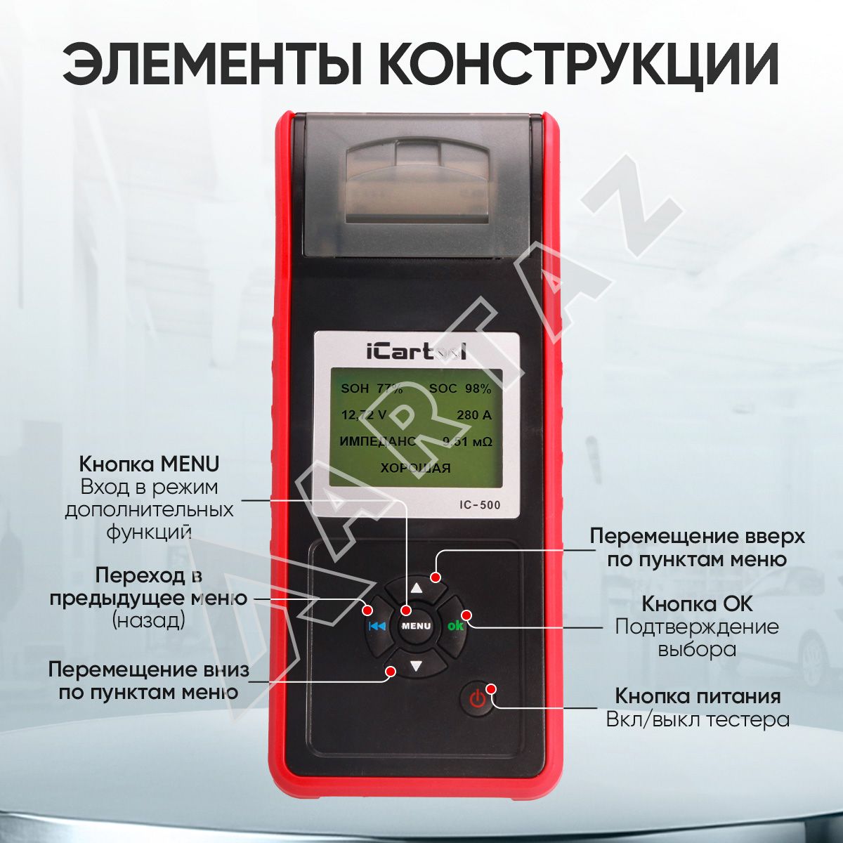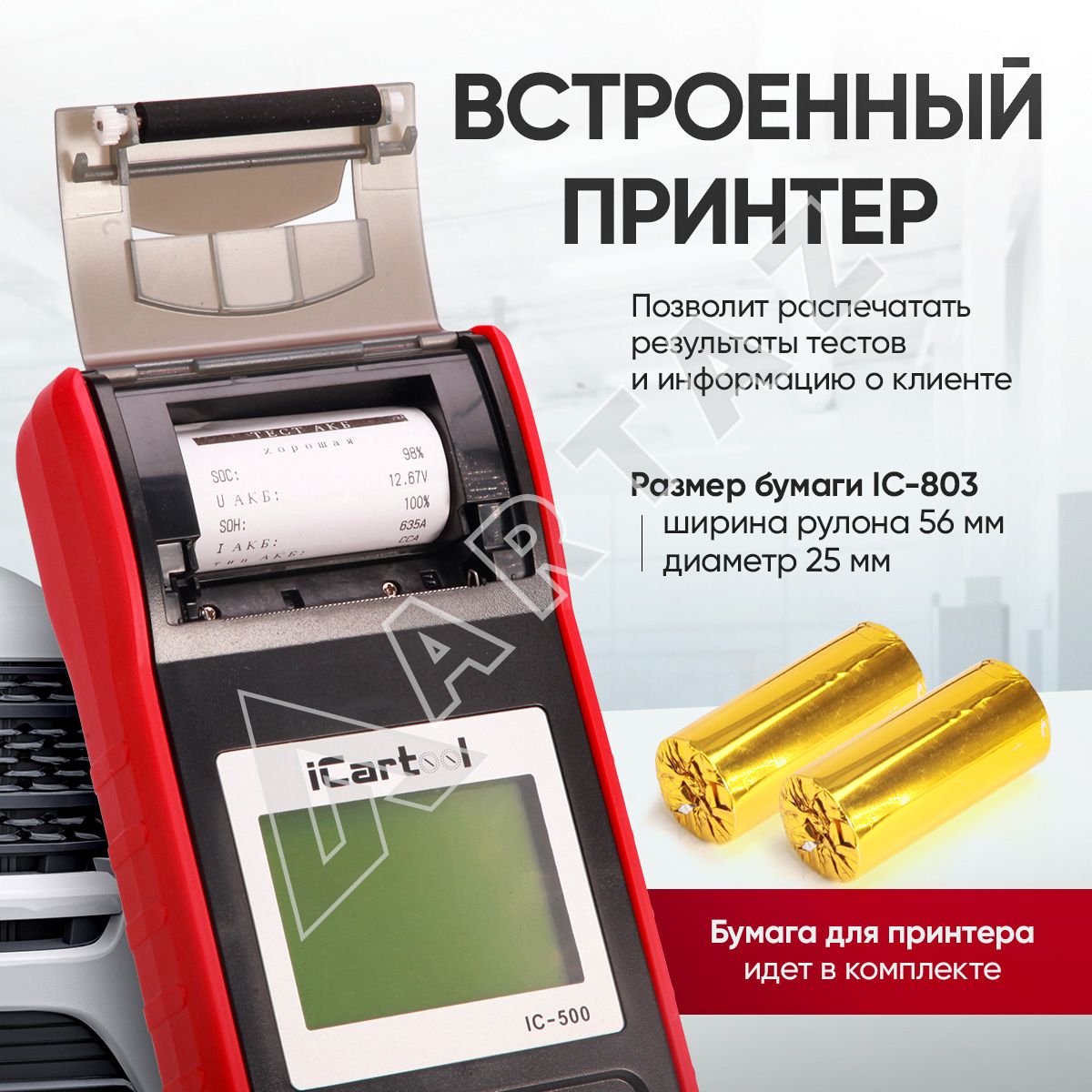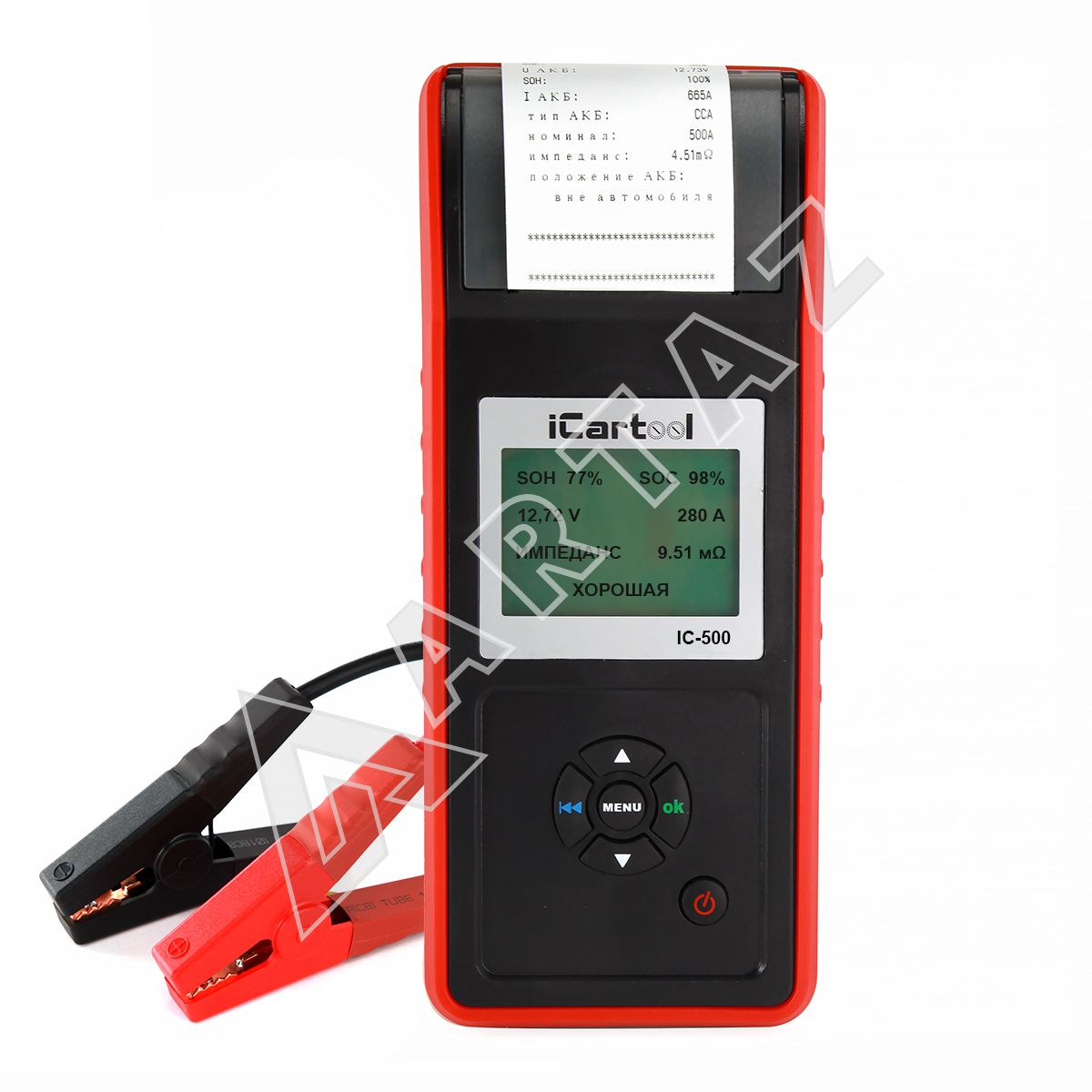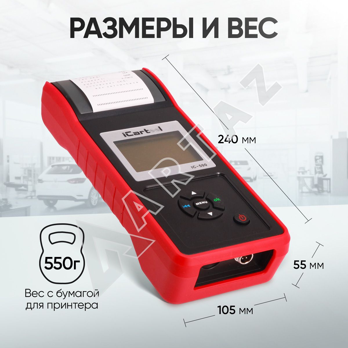 Тестер аккумуляторных батарей 12/24В с цифровым дисплеем и термопринтером iCartool IC-500
