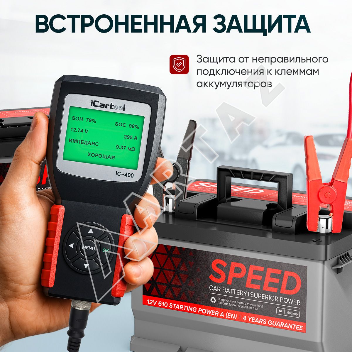 IC-400 точный и надежный тестер аккумуляторов 12/24В с цифровым дисплеем и защитой от переполюсовки