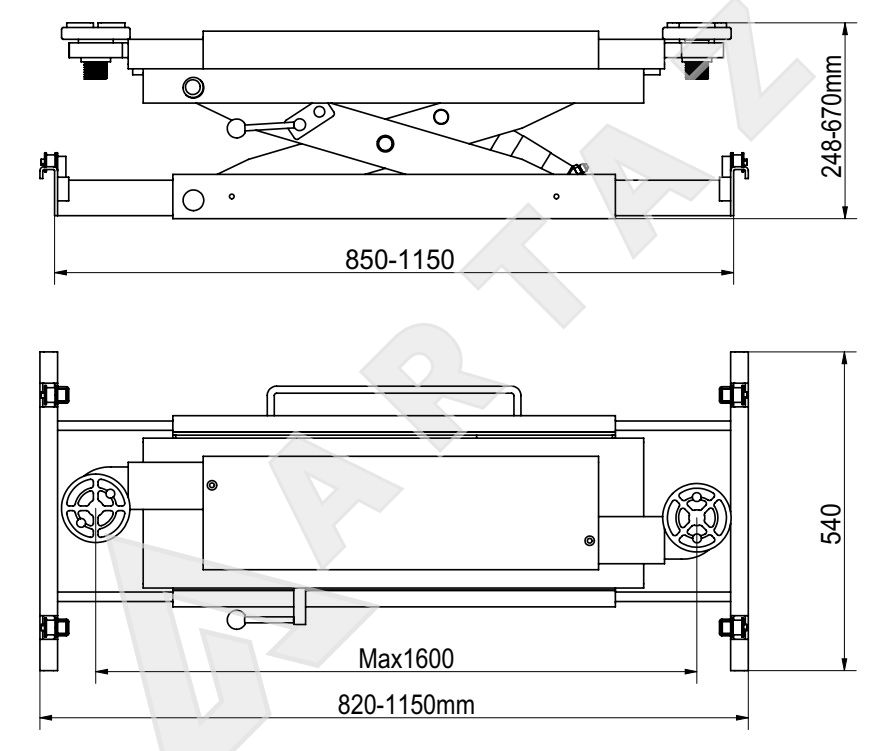 - Высота подъема: 540 мм; минимальная высота подхвата: 248 мм