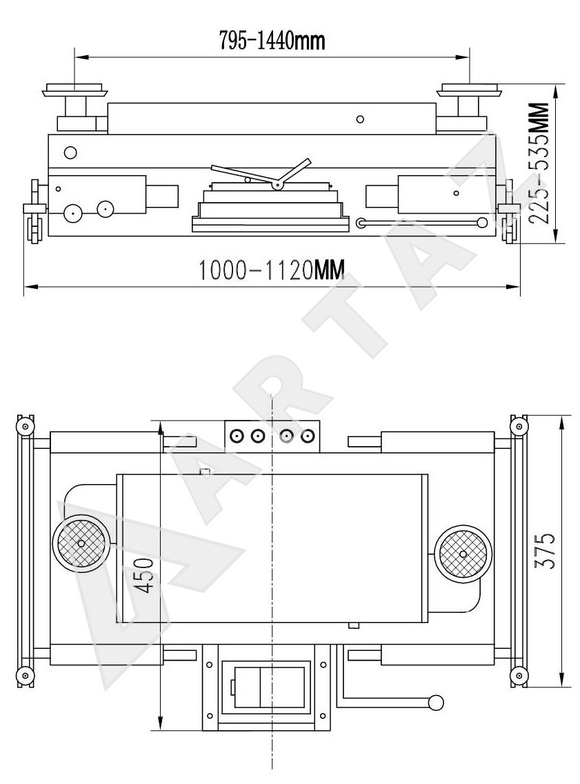 - Длина траверсы: 795–1440 мм; колея: 1000–1120 мм