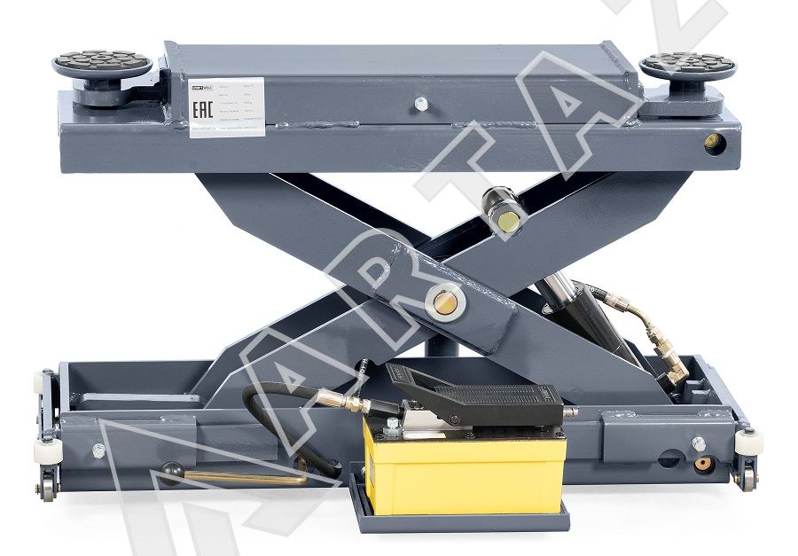 Диапазон регулировки длины 795–1440 мм и колеи 1000–1120 мм обеспечивает универсальность на разных моделях техники. Пневмогидравлический привод гарантирует плавный и контролируемый подъем при 6 бар, что повышает безопасность работ. Низкая минимальная высота подхвата 225 мм и высота подъема 535 мм позволяют использовать траверсу при ограниченном пространстве в ямах и на подъемниках. Прочная сборка и промышленное исполнение рассчитаны на интенсивную эксплуатацию в СТО.