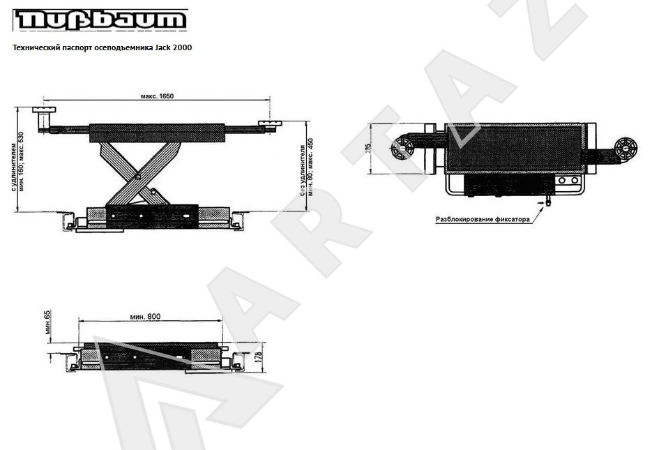 - Минимальная высота подхвата: 178 мм; высота подъёма: 450 мм