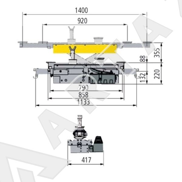 - Тип привода: пневмогидравлический, рабочее давление 6 бар